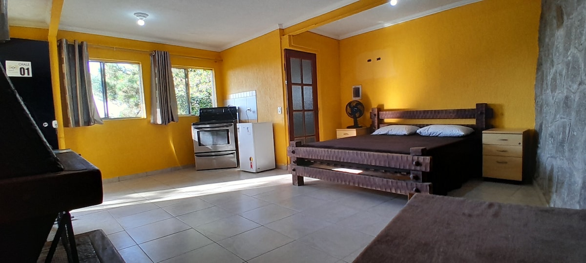 Chalet rústico en plena naturaleza Con baño privado Para un máximo de tres personas: una cama doble y una cama individual ° Minibar; Wifi y Smart TV (solo con internet) y que puede ser inestable, ¡porque estamos en medio de las montañas! Admite mascotas Aparcamiento en la calle (45) Chimenea Ofrecemos ropa de cama y toallas de baño No ofrecemos comidas en este momento Está a 3 km/5 min en coche o motocicleta del centro de la ciudad (Santa Inês) ¡Vista de la calle Jaci y Serra da Cantareira! ¿Tienes alguna pregunta? ¡Envíanos un mensaje!