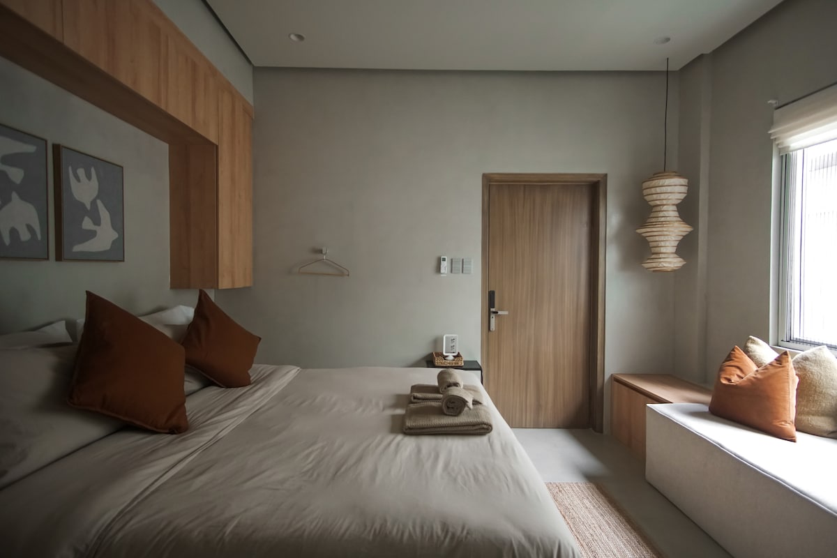 Inspired by the morning sky, Sora offers a tranquil private escape from the city. Nestled in one of Manila’s most prestigious neighborhoods, this 16sqm studio is one of four secluded suites tucked behind a curated furniture showroom. Surrounded by an expansive tropical garden and a serene koi pond, the space blends comfort, sophistication, and quiet elegance, creating a restorative retreat while keeping the city’s conveniences within easy reach.