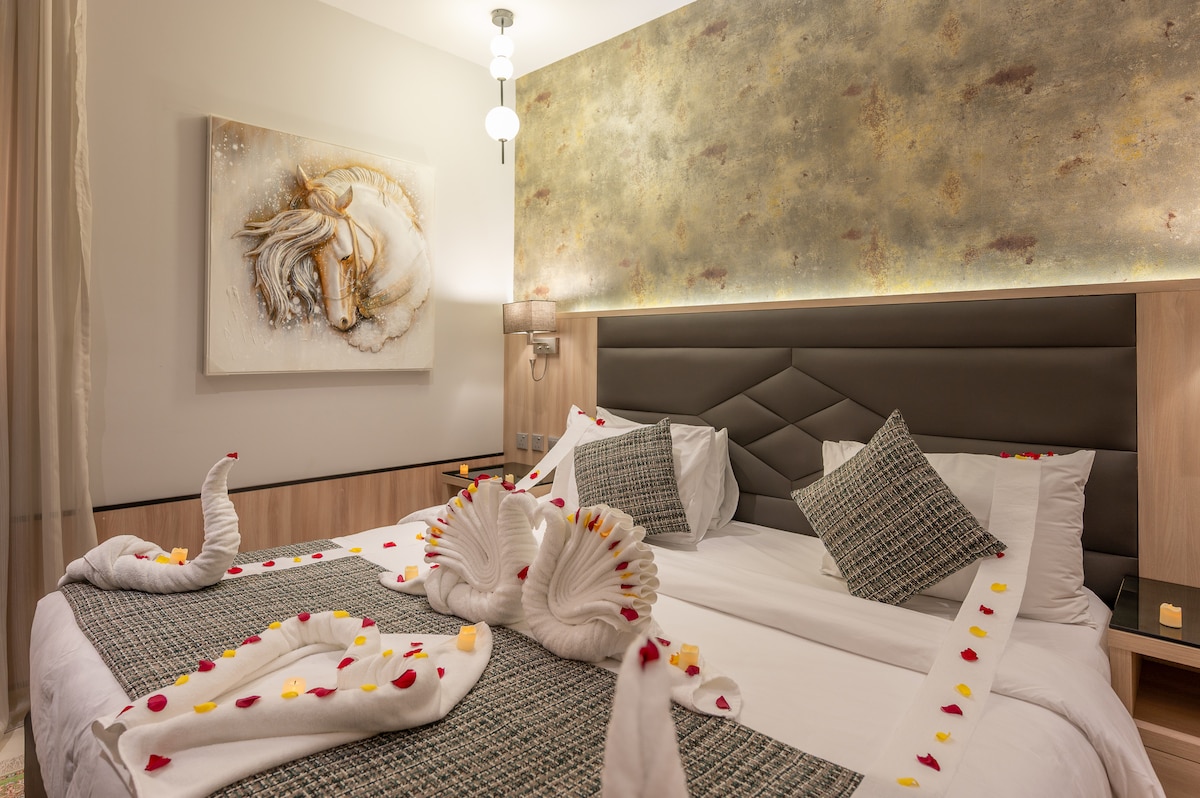 Suite moderna de 1 dormitorio y sala de estar estilo hotel