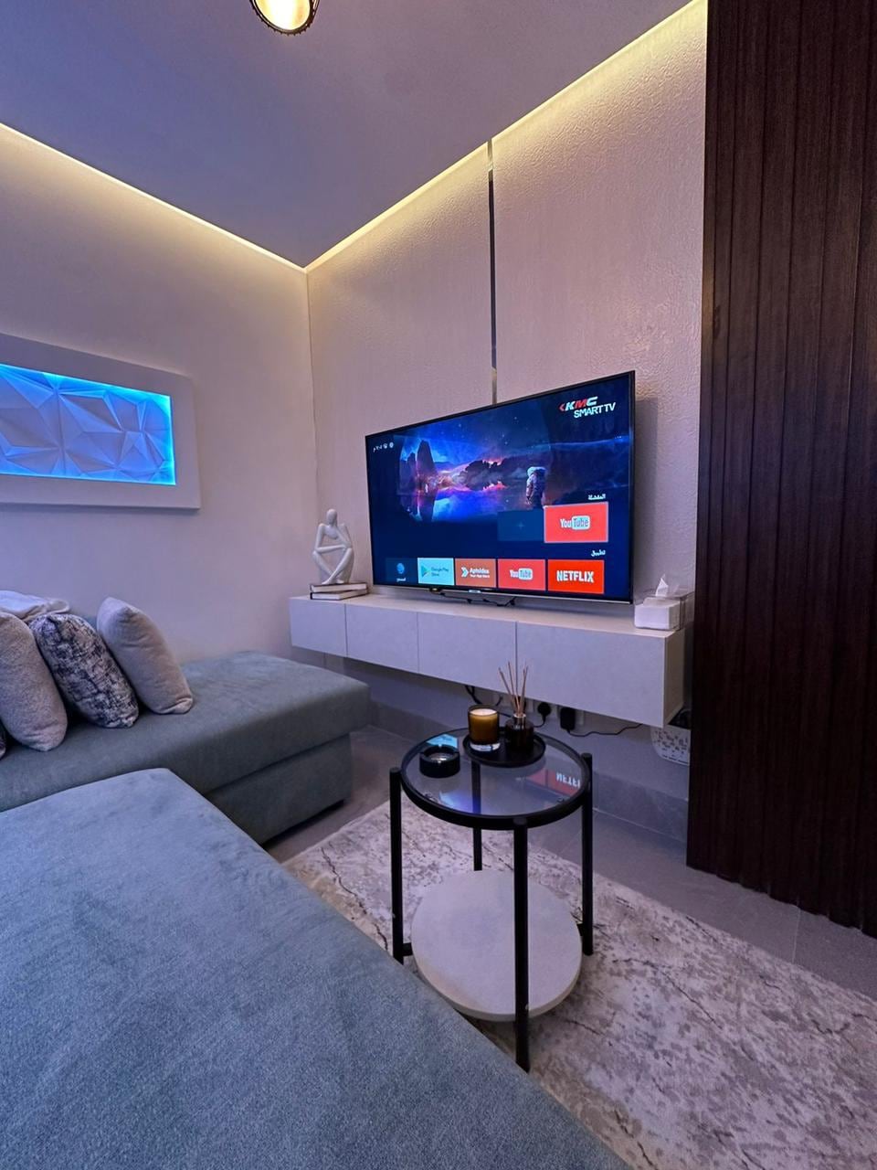 Welcome to our cozy private studio, designed for your comfort. 🚪Enjoy the convenience of Self Check-in with a smart keypad. Enjoy 5G wifi and a 75-inch TV with Netflix, Shahid, and YouTube Premium The bathroom is stocked with essentials like towels, soap, shampoo, and body wash for your convenience. Just a minute away, you'll find everything you need such as a mini-market, laundry service, barber shop, and restaurant.