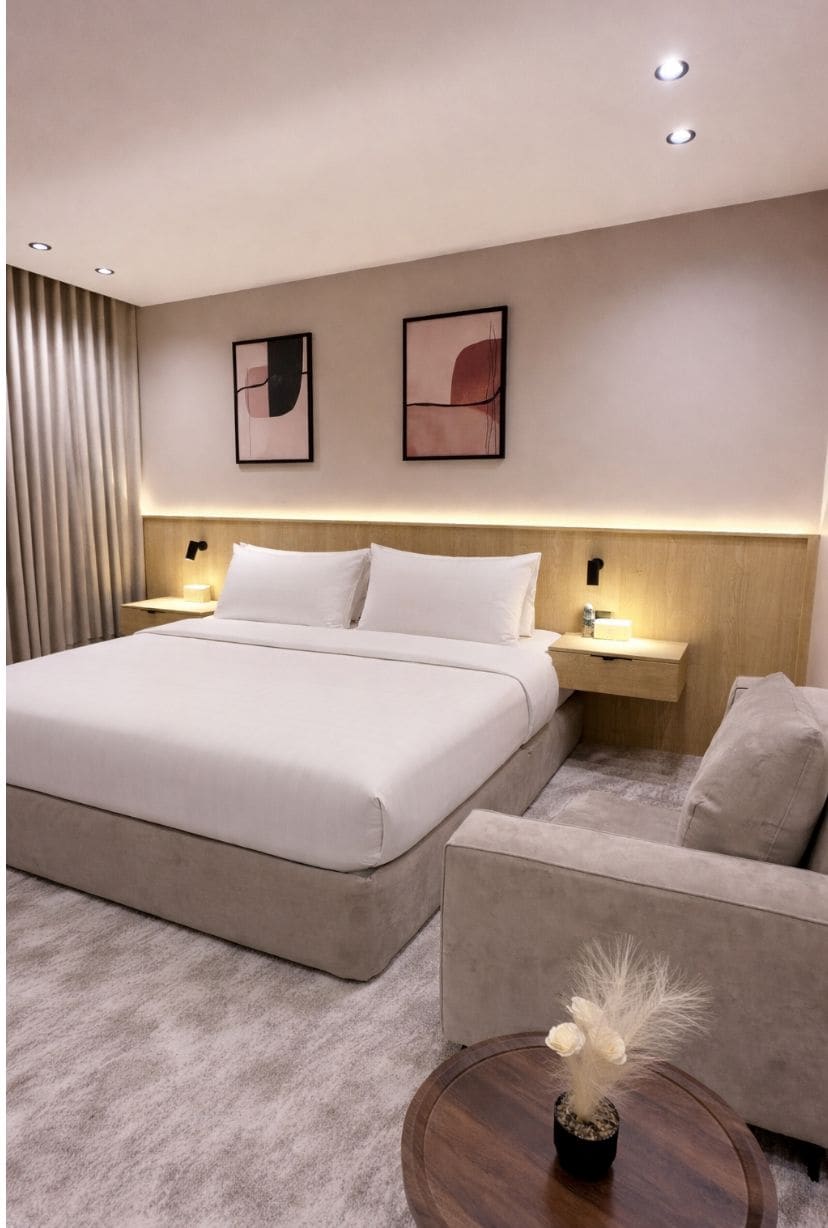 غرفة فاخرة بسرير ماستر مريح، جلسة أنيقة، شاشة ذكية، دورة مياه خاصة وركن قهوة. قريب من الحرم المكي وفي منطقة هادئة وآمنة بجوار جامع الراجحي، مع سهولة الوصول للمولات والمطاعم والممشى. مثالي للراحة والسكينة لقضاء أجمل الأوقات. Luxury room with master bed, stylish seating, smart TV, private bathroom, and coffee corner. Near Al-Haram in a quiet, safe area next to Al-Rajhi Mosque, with access to malls, restaurants, and walking areas. Perfect for comfort, relaxation, and unforgettable stays.