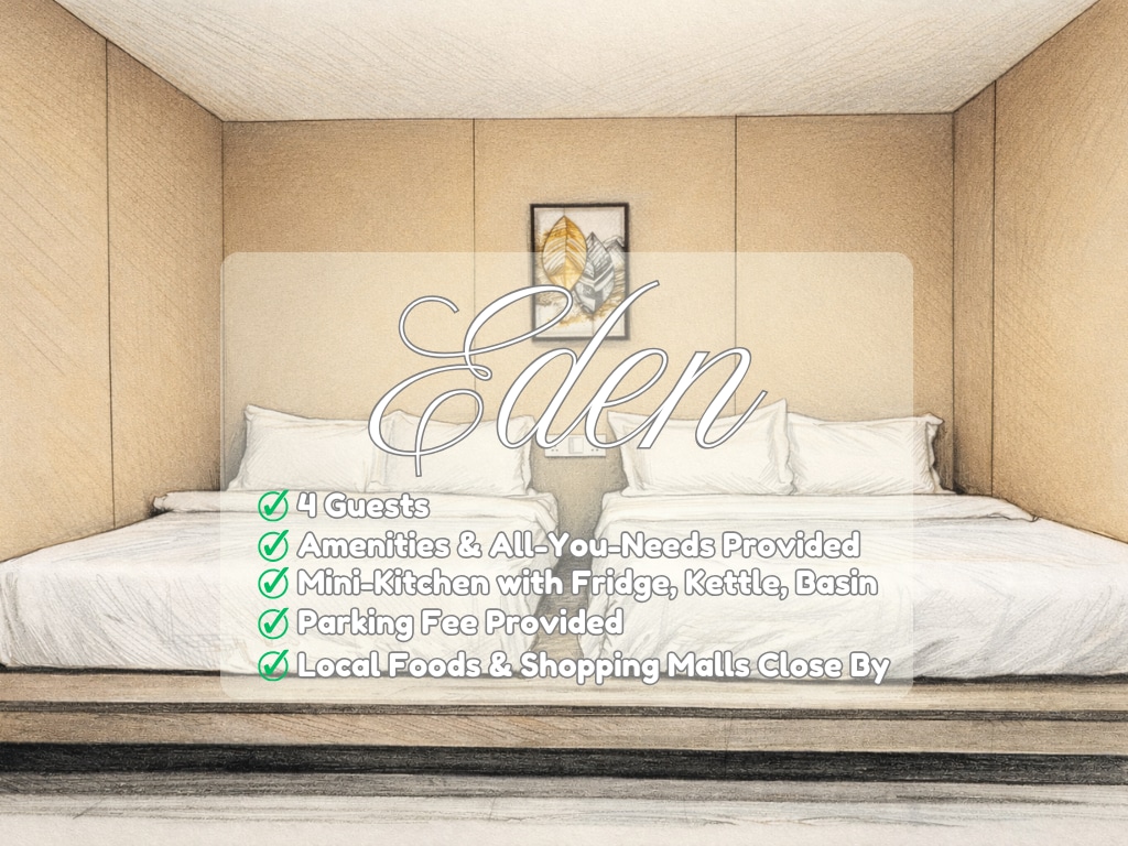 Eden is a compact room for 4 guests and it is suitable for all. Eden comes with: 🛏️2 queen-sized beds 🍽️Small kitchen space with mini fridge, kettle, basin. 🚿Private bathroom with soap & shampoo 🔑100% self check-in Around Eden: 🚶♂️5 mins walk to Shopping Malls 🚶♂️10 mins walk to A' Famosa 🚔7 mins grab to Jonker Street 🅿️Reserved Parking✅ *Parking fee provided if reserved parking is not available 👉this unit is on 1st floor. Direct Inquiry: 📞0️⃣1️⃣1️⃣ 5️⃣3️⃣3️⃣8️⃣ 2️⃣4️⃣0️⃣0️⃣