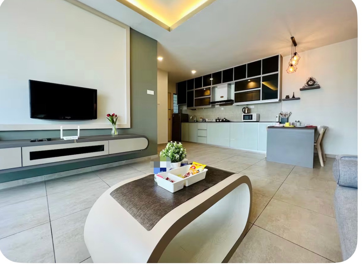 Welcome to Just Stay Inn Guest House. Stay comfortably on the 19th floor with city views. This fully furnished unit includes a comfy bed, Smart TV with Netflix, Wi-Fi, a kitchenette, and essentials. Enjoy pools for adults and kids, a sauna, gym, BBQ area, and playground. A café downstairs offers food delivery to your door. Menu is in the welcome book or ask your host. Perfect location near MITC in Melaka for tourists and families.