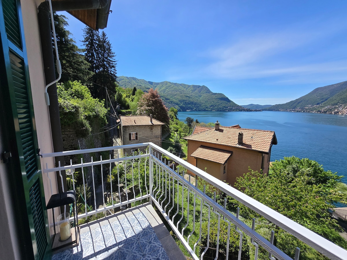 Peaceful & serene Lake retreat. A stunning 2-room, 45m²/485ft² flat with a private terrace & shared garden (shared with only 2 other units). Majestic 180° Lake views from both the terrace & the rooms. Curated interiors with modern boho-chic design. The garden & terrace boast breathtaking views of the Lake (& George Clooney’s villa, right across the shore!). Unforgettable sunsets await u at the Lake's most picturesque retreat! 2-min walk to the public boat dock & 5-min to a lake bathing spot.
