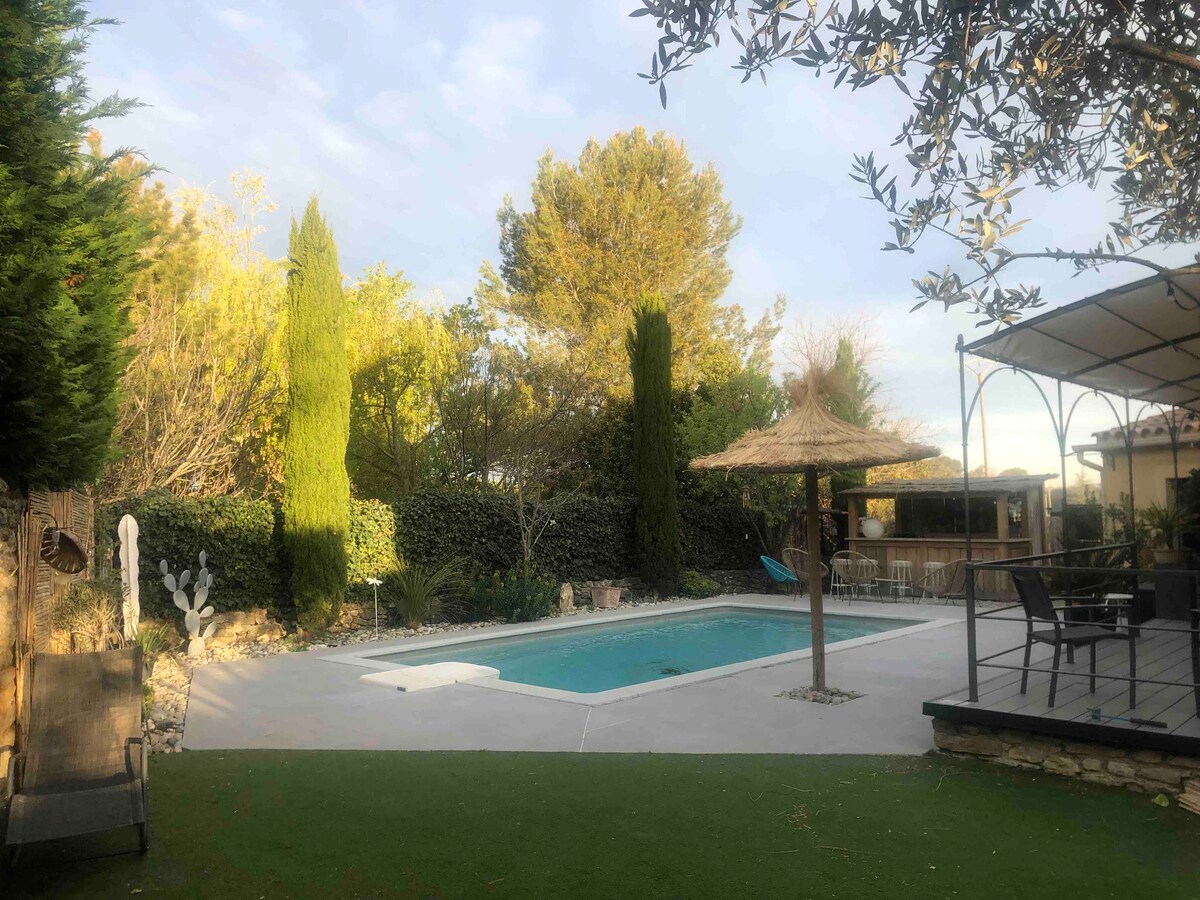 "La Maison aux Oliviers" est un petit mas de charme de 90m2, climatisé, indépendant et situé sur une ancienne oliveraie, au calme dans un jardin paysager offrant une belle piscine privative chauffée et sécurisée. Son large auvent offre la possibilité de vivre à l'extérieur à l'abri du soleil et du vent (mistral). Proche du centre historique, du marché local et des commerces (à pied), elle est parfaitement équipée pour le télétravail (Fibre haut débit)