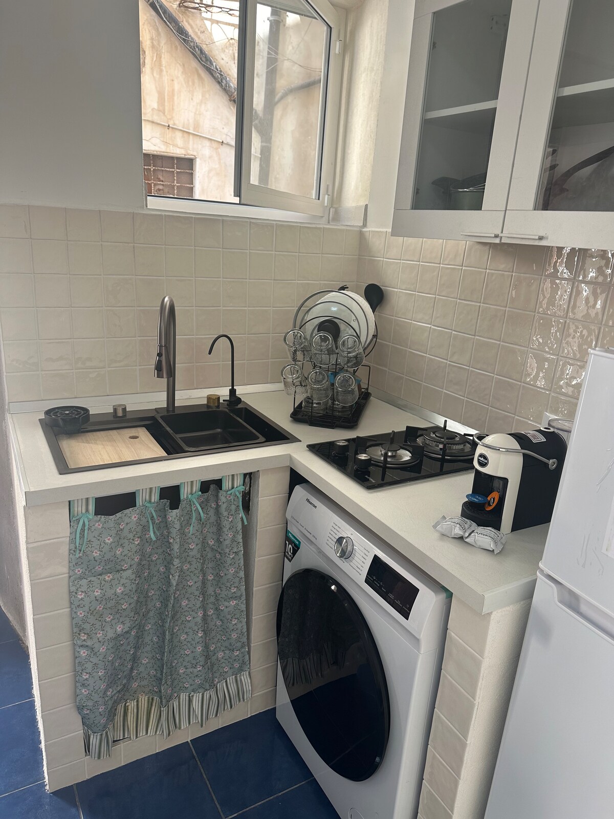 Apartamento de 1 dormitorio - - Planta baja - Máximo 4 ocupantes Hay 2 camas (1 sofá cama doble/cama oculta y 1 cama doble). Hay supermercados, panaderías y heladerías muy cerca de las instalaciones y muchos restaurantes frente al mar. Además, existe la posibilidad de alquilar vespas, coches de cuatro ruedas y mini coches para recorrer toda la isla. Con este transporte podrás explorar profundas cavernas, escarpados acantilados y las espléndidas vistas de la isla. La playa de Canneto es la principal playa de baño de la isla y tiene algunas de las aguas azules más claras de todo el Mediterráneo. Apartamento en el primer piso en la ciudad de Canneto. Se compone de una sala de estar con acceso a través de una escalera de hormigón que conduce al loft con una cama doble y otra escalera que conduce a la planta baja hasta la sala de estar. Hay una cocina pequeña al aire libre y un baño que conduce a la sala de estar. Tiene una pequeña terraza al aire libre equipada con mesa, sillas y una ducha externa adicional. El aire acondicionado está incluido en el precio (dos aires acondicionados). A 30 metros del mar...................... Amplio apartamento estudio en la planta baja, 1 cama doble con loft desde la ventana, sala de estar con sofá cama doble, cocina pequeña, baño y ducha y TV a color y patio trasero y ducha exterior. El costo del agua, la electricidad y el gas están incluidos en el precio de alquiler. Otros servicios y cargos no incluidos son ropa de cama, ropa de mesa y toallas de baño. Los clientes deben traer estos artículos personalmente o los podemos contratar a un precio fijo. Costo de limpieza: 40 euros