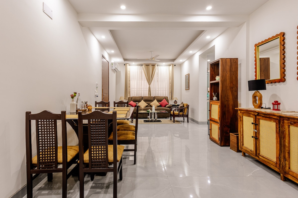 En «H is for Home» ofrecemos un espectacular apartamento privado de 3 dormitorios y 3 baños con una decoración elegante y servicios completos en el corazón de Delhi. Se encuentra en un edificio cerrado y seguro. Delicioso desayuno casero, té/café incluido. Ofrecemos servicio de coche + conductor para recogerte/dejarte en el aeropuerto, dentro de Delhi/NCR y para viajar a Agra/Jaipur. La unidad está situada en el tercer piso con acceso a través de un ascensor moderno. Todas las ventanas tienen rejillas y ofrecemos wifi Jio Fiber superrápido.