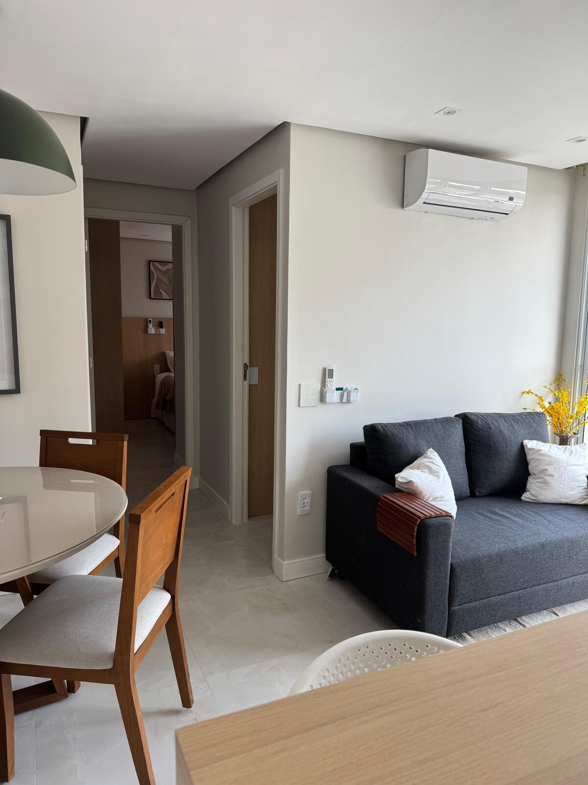 Apartamento hermoso, nuevo, moderno, completo y 100 % climatizado. Relájate con tu familia en este tranquilo alojamiento diseñado para tu comodidad y bienestar Vecindario noble y seguro Registro flexible y accesible Comodidad garantizada con camas de calidad completa ✈️ Cerca del aeropuerto 🌃 Cerca de bares, restaurantes y centros comerciales, excelente para noches especiales 🏖️ A solo unos pasos de la playa más famosa de la ciudad, la playa de Ponta Negra, excelente para pasear Cerca de la feria de artesanía