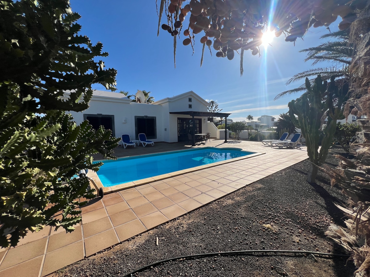 Casa de alquiler integro, 3 dormitorios, 3 baños, bodega, comedor,cocina,sala de estar,museo,terrazas, jardín, barbacoa, Wifi, tv satélite , solarium, parking gratuito,completamente vallada, con vistas a los volcanes, situada cerca del Parque Nacional de Timanfaya.