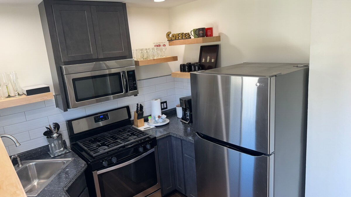 Un apartamento loft moderno pero acogedor de 562 pies cuadrados con cocina completa y baño, cama tamaño queen (con un colchón Winkbeds Luxury Firm), una cama / escritorio individual Murphy, sala de estar, vestidor, FireStick, Roku, reproductor de DVD, WiFi y más. Ten en cuenta que el granero está en nuestro patio trasero y es parte de nuestra casa, por lo que no permitimos la reserva inmediata. Sabemos que es un poco molesto, pero esperamos que todos lo entiendan, ya que nosotros también vivimos aquí.