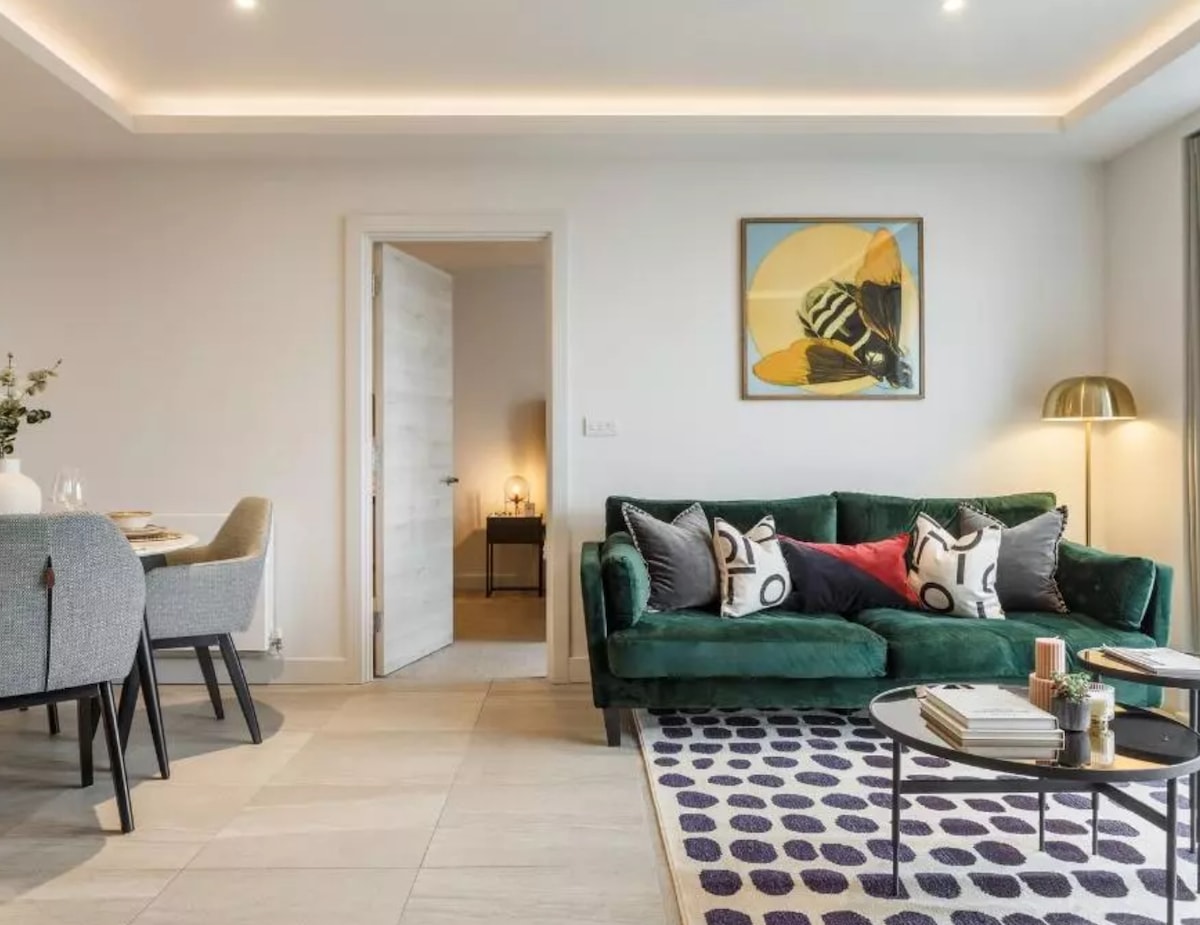 Apartamento de lujo de 2 dormitorios con impresionantes vistas al agua🌊. Capacidad para 5 personas con 2 camas dobles y una cama plegable disponible bajo petición. Disfruta de una amplia sala de estar de planta abierta, una cocina totalmente equipada, 2 modernos baños y un balcón privado. Ideal para familias, amigos o alojamientos de negocios. Wifi rápido, sábanas frescas, toallas y todos los elementos esenciales para una estancia cómoda y relajante en una ubicación privilegiada. Aparcamiento de pago asequible 🅿️ por solo 6 £ por 24 horas / 10 £ por 48 horas.
