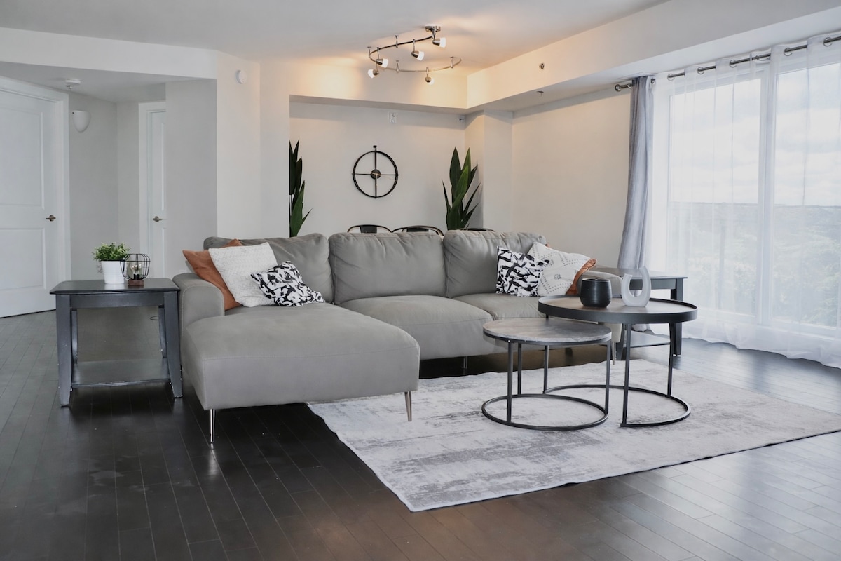 *** Actualmente hay acceso limitado a las áreas comunes, gimnasio y azotea debido al Covid. Por favor, sigue las pautas normativas. Puede caber 6 si es necesario, pero más adecuado para 2-4 personas** Cerca de 1000 pies cuadrados en el interior. Glasshouse en el centro. Ventanas del piso al techo. Mi alojamiento está cerca de la vida nocturna, el transporte público, el centro de la ciudad, la pista de hockey NHL, los restaurantes, el centro, los parques y los museos . Te encantará mi espacio por la cama cómoda, las vistas, la cocina, el diseño abierto, la lavadora/secadora. STRA-2024-2456470