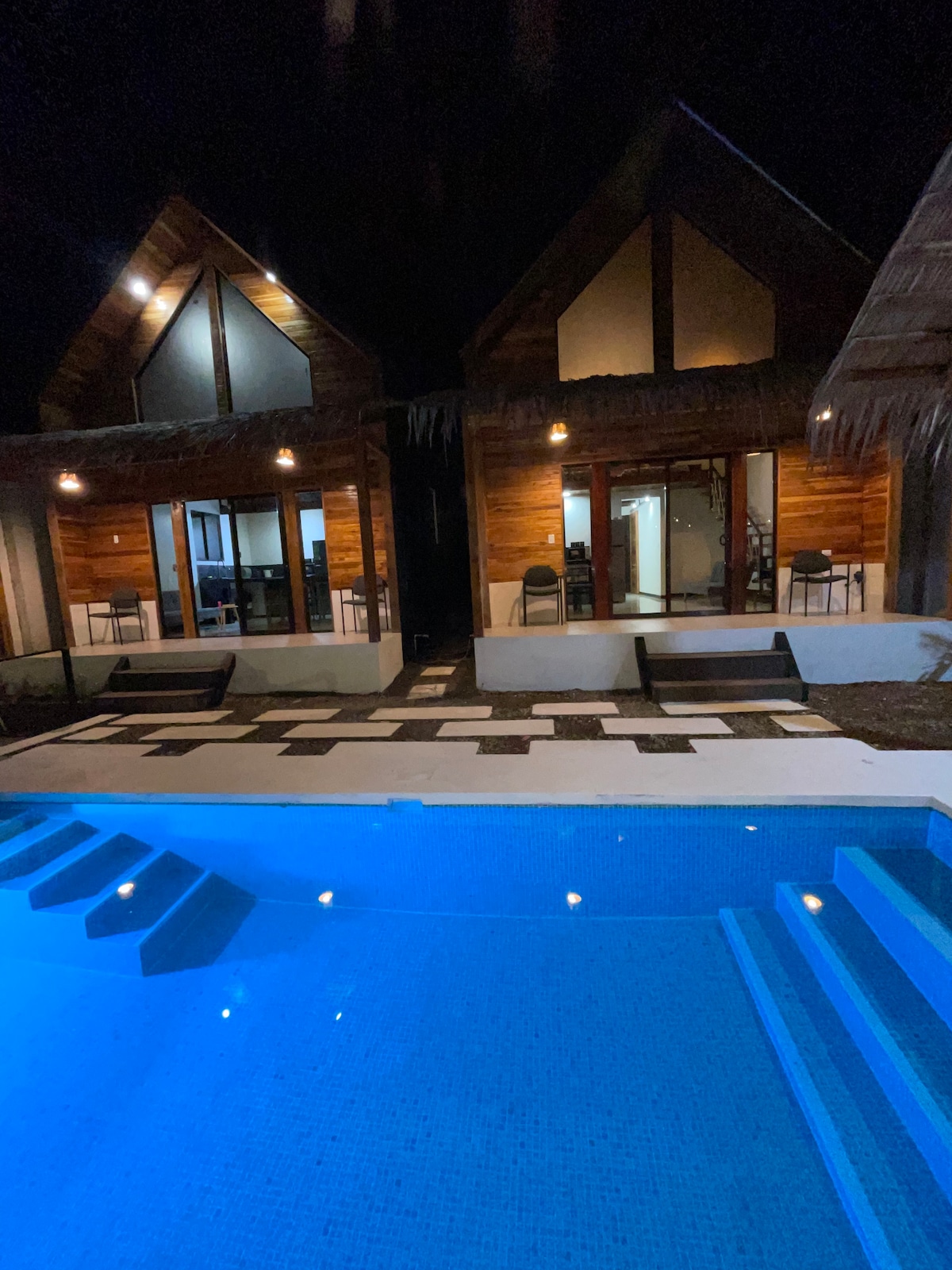 Alojamiento solo para adultos. ¡¡Bienvenido a unos de los lugares más impresionantes del mundo!! Todas las cabañas son para dos personas e incluyen cocina con sus respectivos utensilios, nevera pequeña, pantalla plana 50 pulgadas, aire acondicionado, parlantes bluetooth, internet 100 megas, armario, camas tamaño queen, ropa de cama, baños privados con secador de pelo y artículos de aseo gratis, toallas de baño, toallas de playa, terrazas con vistas a la piscina. También incluyen caja fuerte.