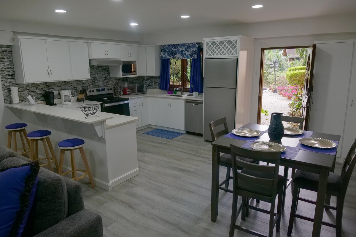 Ubicado en un barrio atractivo y seguro, nuestro apartamento independiente de 1 dormitorio cuenta con 1 cama tamaño queen, amplio espacio en el armario junto con una amplia sala de estar, comedor y cocina para tu comodidad. Wifi rápido, Smart TV con Netflix, BBC y aplicaciones de YouTube. La cocina está totalmente equipada con utensilios, pequeños electrodomésticos, lavadora y secadora, por lo que todo lo que necesitas está en un solo lugar. Jardín al aire libre y zona de piscina para disfrutar. Fácil acceso a Puerto España, el Savannah, restaurantes, tiendas de comestibles y tiendas.