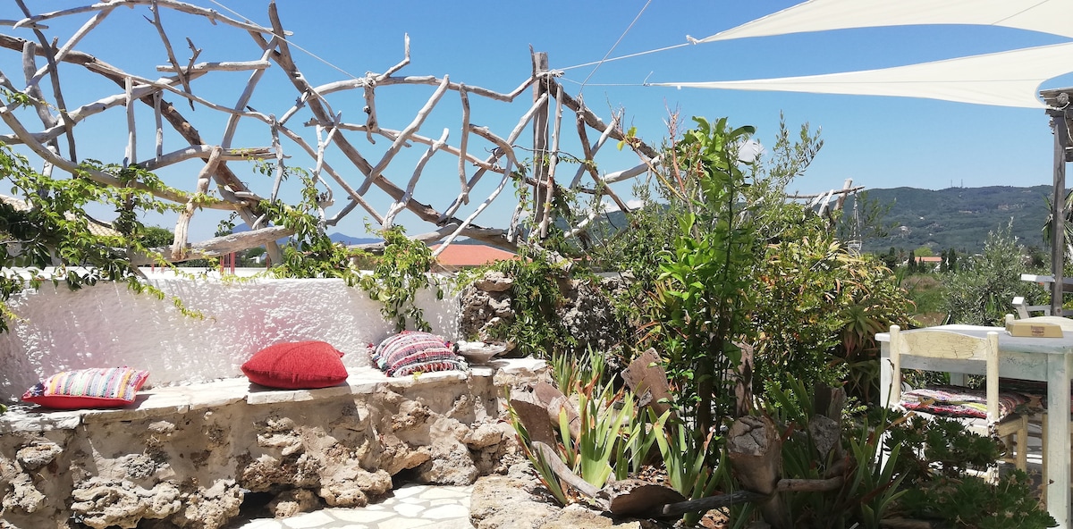 Estamos en el pueblo de Perivoli, en la parte más estrecha del sur de la isla. Las tabernas, las tiendas y el autobús a la ciudad de Corfú están a 5 minutos a pie. A solo 2 km se encuentra el lado este con sus pueblos pesqueros y a 3 km la costa oeste con kilómetros de playas de arena. Su alojamiento es tranquilo en una casa separada que nos conecta a través del jardín. Compartirá el jardín con 2 tortugas, gatos y perros muy cariñosos. Desde aquí se puede ver el amanecer sobre las montañas del continente.