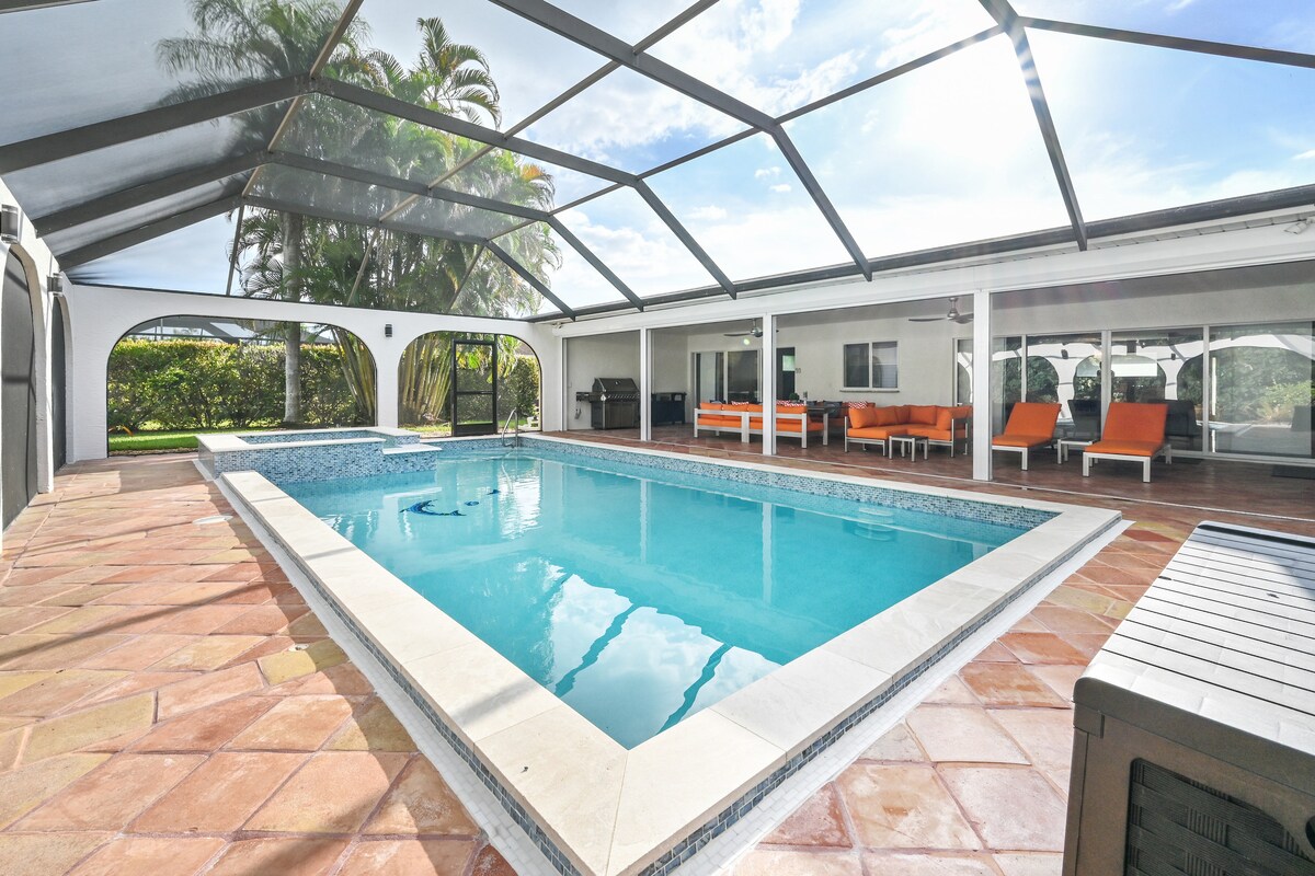 Hermosa y moderna casa de NUEVA construcción con piscina climatizada, en canal de agua salada. Sin daños después del huracán Milton. DIVERSIÓN para familias y tranquilidad para adultos; totalmente equipado con mesa de juegos electrónicos, juguetes y flotadores de piscina, juegos al aire libre, juegos de arcade, juegos de mesa... ¡mucho para disfrutar! ¡Disfruta de la vida interior/exterior en el amplio lanai estilo resort y refúgiate en los elegantes acabados y lujosas comodidades en todas partes!