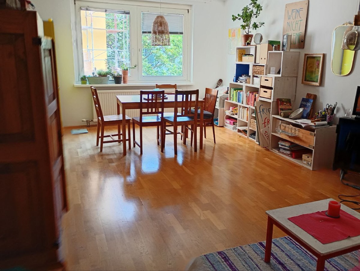 Alquilamos un encantador apartamento de construcción antigua en el corazón de Viena. El apartamento, recientemente reformado, se encuentra en la planta baja, no se ve desde la calle y todas las ventanas están equipadas con protección antirrobo. El apartamento está situado en el centro, pero en una tranquila calle lateral, no muy lejos del famoso Naschmarkt de Viena. Los 45 m2 constan de un salón-dormitorio, una pequeña cocina con comedor, un baño con ducha y un aseo separado.