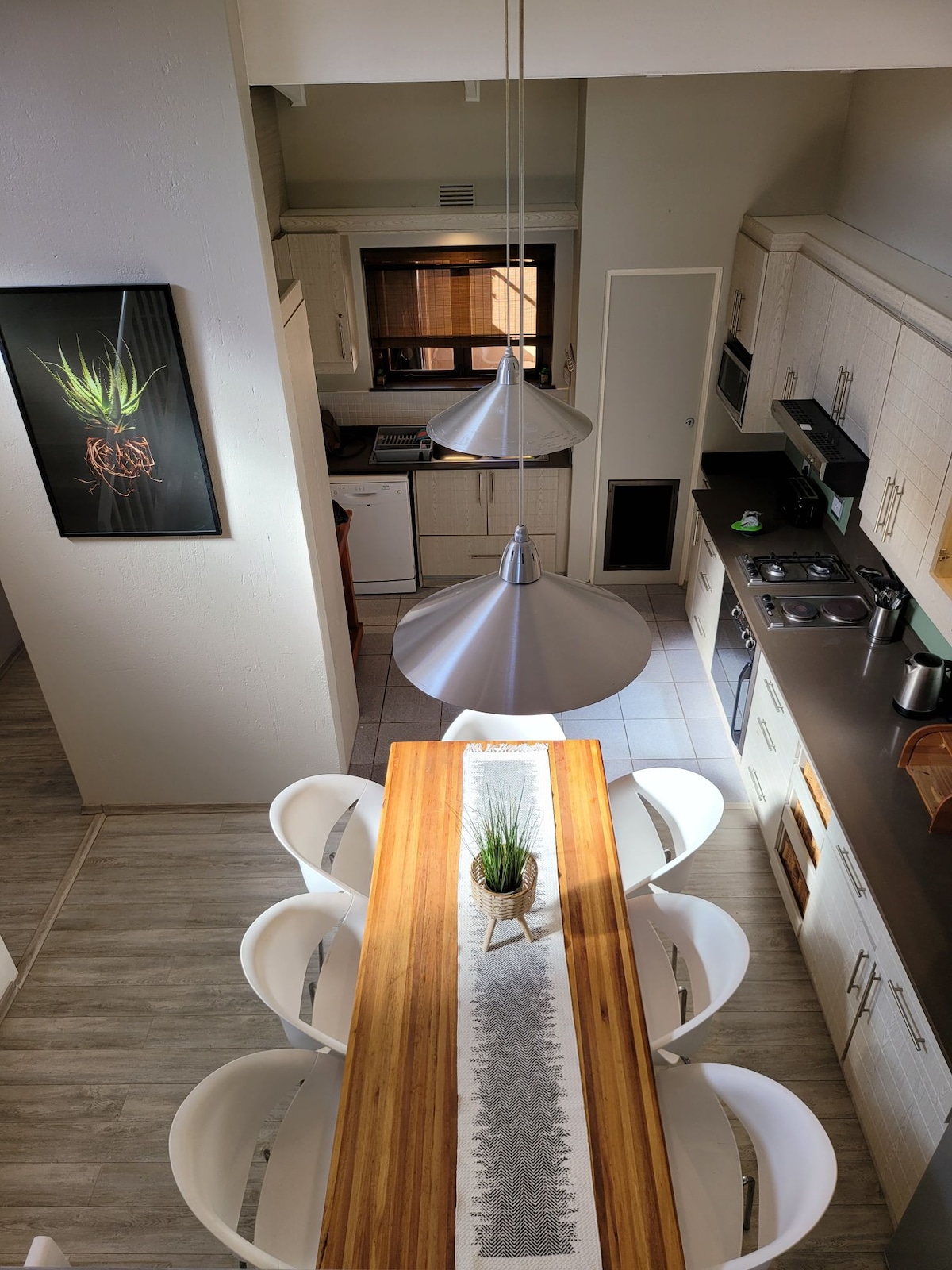 En la prestigiosa Sanlameer Estate. ¡Perfecto para una familia de 4, ávidos golfistas, amantes de la playa y turistas! Tenemos 2 TANQUES DE AGUA y un inversor de electricidad. Una hermosa villa vacacional de 2 dormitorios y 2 baños situada a orillas de la laguna con magníficas vistas. Disfruta de un braai en el patio inferior y del café de la mañana en el balcón del dormitorio de la primera planta con vistas a la laguna y a las palmeras. La villa está a 5 minutos a pie de una playa con bandera azul, la piscina del centro vacacional y un campo de golf de primera categoría.