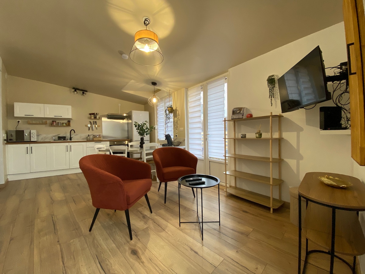 Este apartamento de 2 plantas, antiguo consultorio médico recién reformado, ofrece una estancia para una escapada romántica o un momento de descanso familiar con el jacuzzi de 4 plazas. En la planta baja, una sala de estar con cocina equipada, sofá, TV y zona de comedor da acceso a un pequeño dormitorio con una cama de 140 x 190 (ropa de cama nueva). Arriba, un gran dormitorio con una cama tamaño king 160x200 ( ropa de cama nueva ), un jacuzzi de 4 plazas y un baño. Ropa de cama y toallas incluidas.