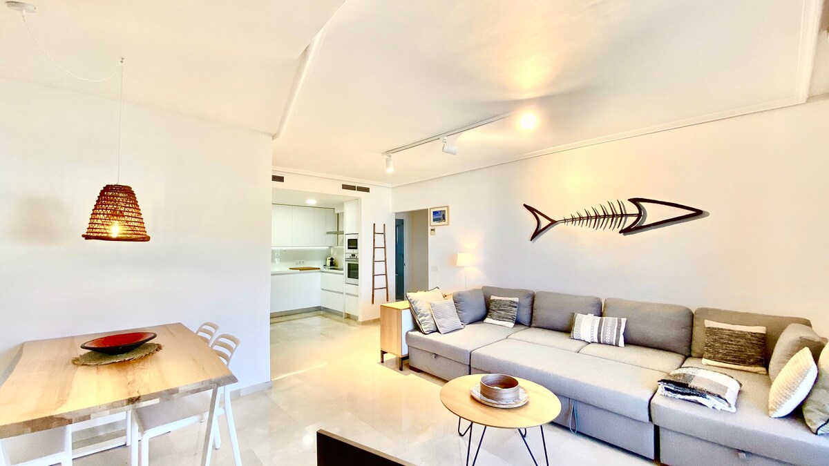 3 dormitorios, frente a la playa, vistas increíbles, gimnasio, squash 🎾 ⚽️ 🏀