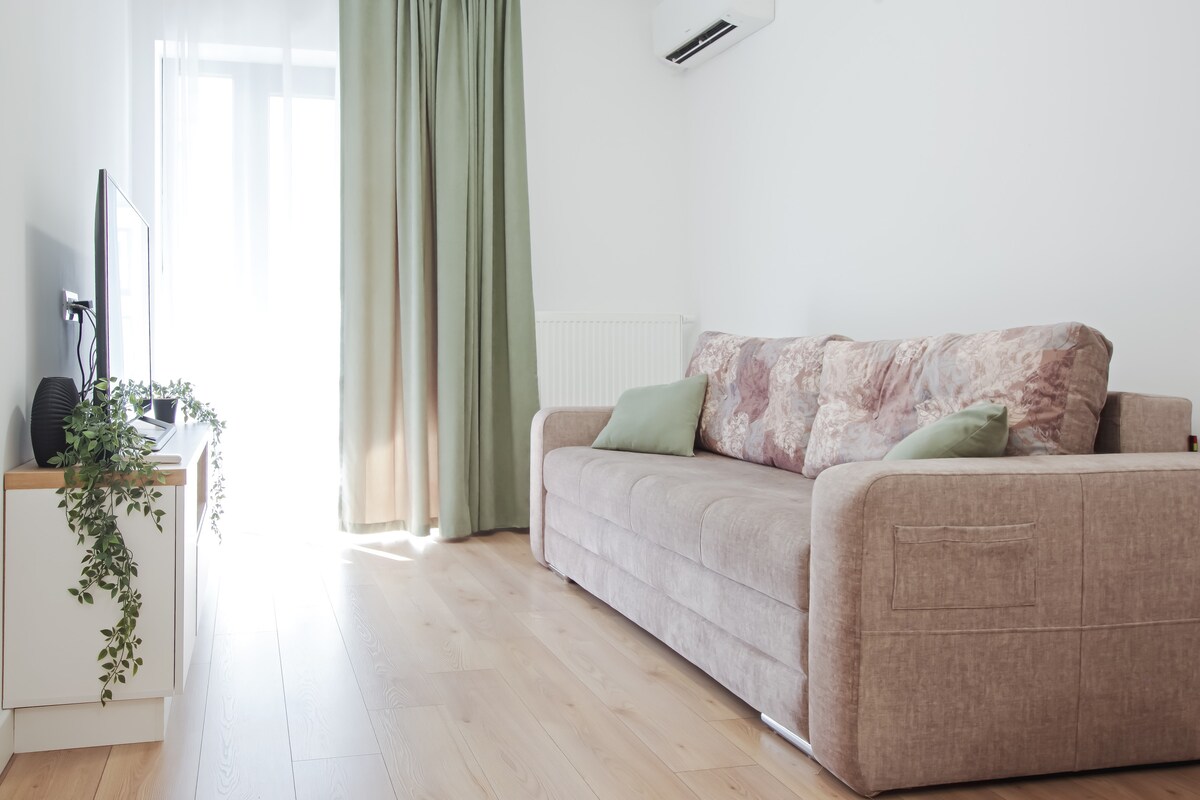 Este estudio elegantemente decorado se encuentra en una zona de nuevo desarrollo, a solo 7 minutos en coche del centro de la ciudad (centro comercial Palas). El edificio se terminó en 2019 y todos los muebles son completamente nuevos. ¡Está cerca de todo! El centro comercial Iulius está a solo 2 minutos, tiendas, cafeterías a la vuelta de la esquina. Ideal para parejas, trabajo a distancia, ¡incluso para tus amigos peludos! ⋆ GRATIS en aparcamiento en la calle ! Wifi GRATUITO de alta velocidad Televisión inteligente y por cable ! Aire acondicionado ! refrigerador grande ! lavadora Gran balcón con vistas