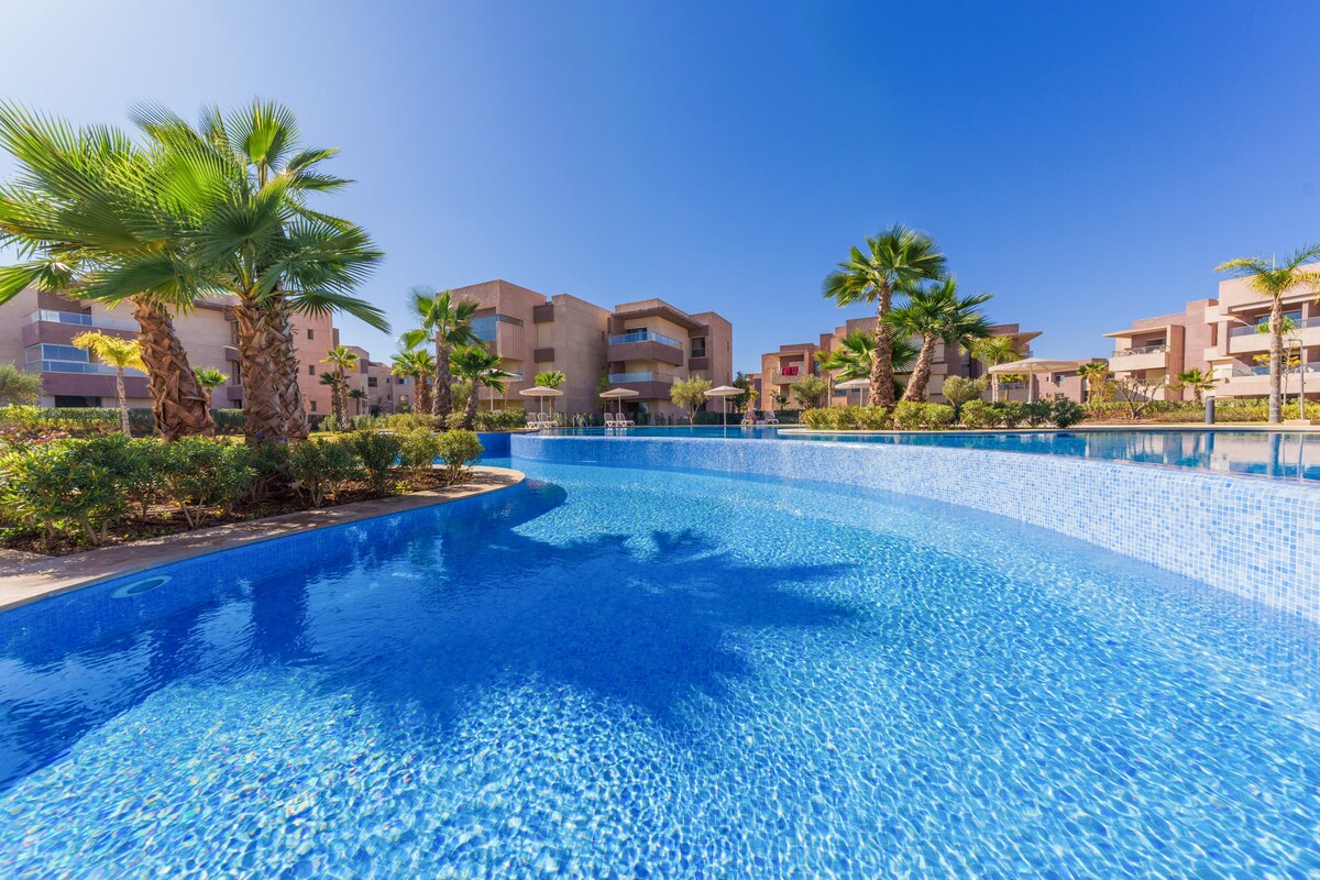 3 Bedroom stylish apartment with a swimming pool in Prestigia Golf Resort right in the city center. Niched in a perfect location, very close to the airport, and only a few minutes away from the Medina, the Mamounia and M Avenue. Enjoy large smart TV for Netflix, comfortable bedding and amazing views on the golf overlooking the Atlas Mountains. The apartment is inside a golf residence with security, a club house, swimming pools and a golf course with breathtaking views of the Atlas Mountains.