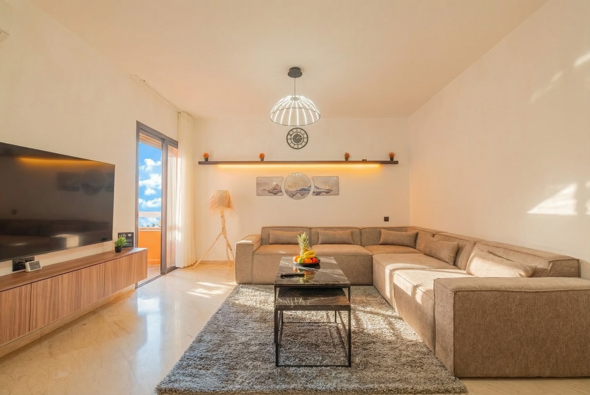 Ubicado en Marrakech, a solo 5 minutos del centro, este elegante y luminoso apartamento se encuentra en una residencia tranquila y segura con piscina. Cuenta con un salón cálido, un amplio dormitorio cómodo con mural iluminado y tocador, una cocina abierta totalmente equipada, un baño moderno y un balcón con vistas a la piscina. 📍 Ubicación ideal, cerca de las atracciones, al tiempo que ofrece un entorno tranquilo ➡️ Perfecto para una estancia relajante en Marrakech