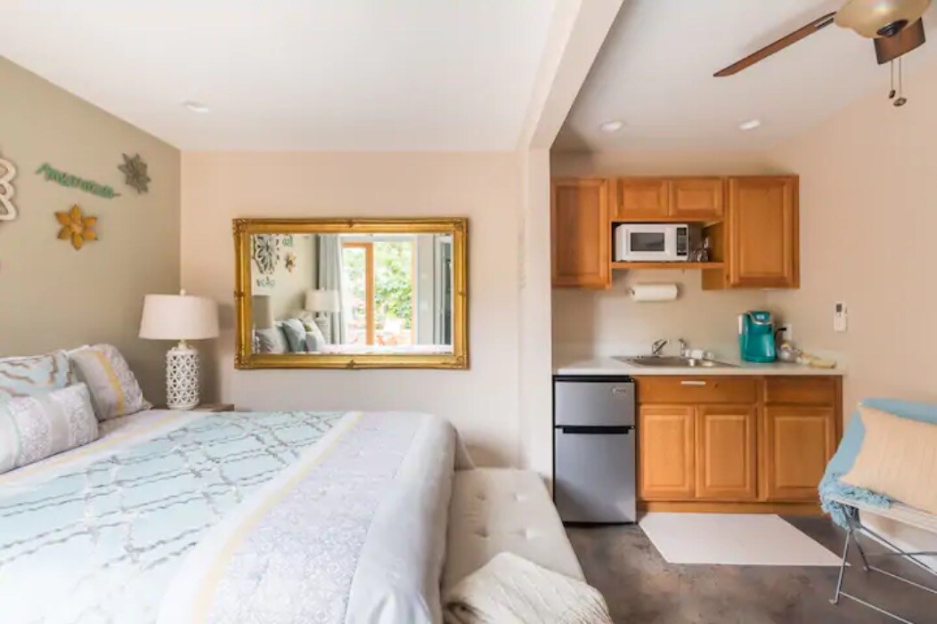 Hermosa y exclusiva casita con entrada privada ubicada en un barrio tranquilo. Keurig con cápsulas de cortesía, wifi, Smart TV, cable, canales de cine y aire acondicionado central privado incluido. ¡Área del patio delantera completamente remodelada con chimenea y mesa de comedor a la altura de la barra recién añadida! Disfruta de una copa de vino y relájate en el patio delantero viendo la puesta de sol sobre la montaña junto a la chimenea. Se admiten mascotas. Tarifa por mascotas de 30 USD; paga cuando te hospedes.