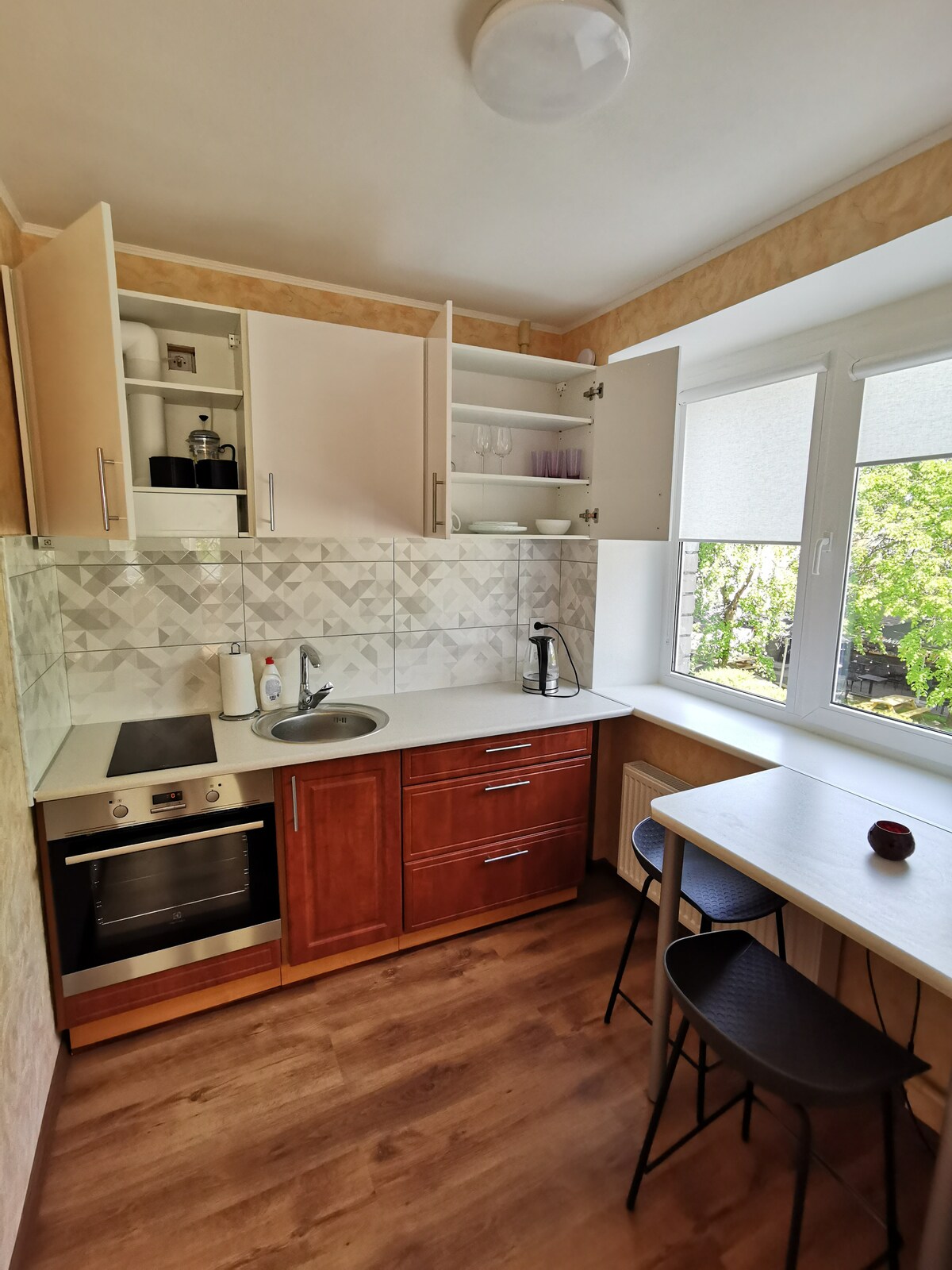 Bright, stylish and full of personality, this Riga hideaway blends calm mountain tones, soft light and warm details. Perfect for rest or work — enjoy morning coffee by the window or unwind after a day in the city. Feel the peace, comfort and charm of a place that truly feels like home. Located in a quiet area with easy access to the city center, cafés and parks. Thoughtfully designed for your comfort — a comfy bed, workspace, and all you need to relax and recharge for the next day ahead.