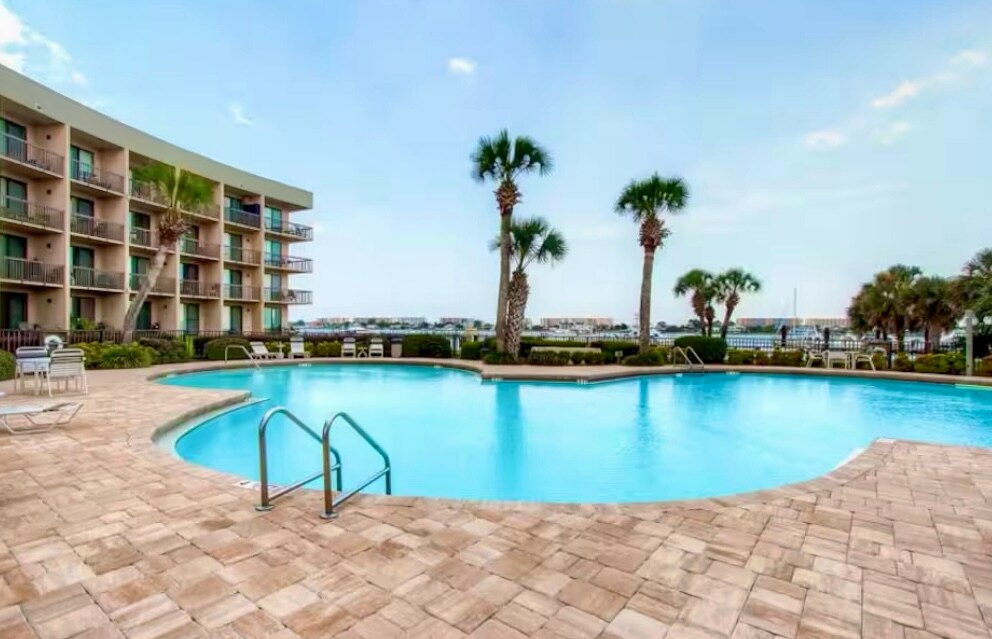 Enjoy breathtaking views of the Santa Rosa Sound and marina from your private top-floor balcony in this waterfront studio. Whether you're sipping coffee at sunrise or watching vibrant sunsets each evening, this spot delivers unforgettable costal charm in a quiet, peaceful setting. Perfect for couples or solo travelers, the studio features a full bath with tile shower, well-equipped kitchenette and sparkling pool. Gulf beaches are a just a short drive away. Free parking and easy self check-in.