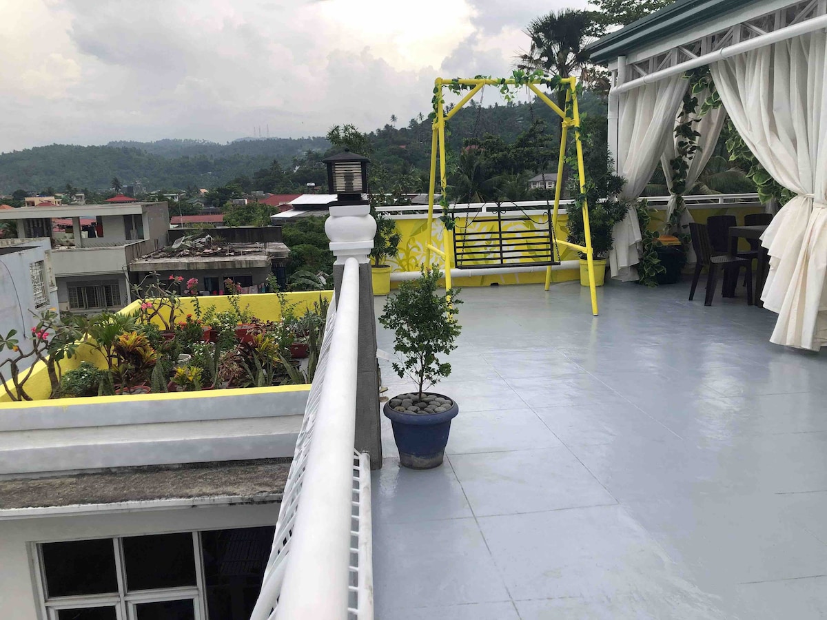 El lugar está en el tercer nivel de nuestra casa. Tiene una vista impresionante del volcán Mayon desde su entrada. No recomendado para personas que tienen dificultades para subir escaleras, ya que los huéspedes pasarán por 2 escaleras de caracol estrechas. Centro de convenciones de Legazpi City: 3 minutos en coche / 12 minutos a pie Hotel Marison: 5 minutos en coche/15 minutos a pie Hotel La Piazza: 5 minutos en coche/15 minutos a pie Antiguo aeropuerto de Legazpi: 5 minutos en coche / 15 minutos a pie SM City Legazpi – 8 minutos en coche Legazpi Grand Terminal – 8 min en coche
