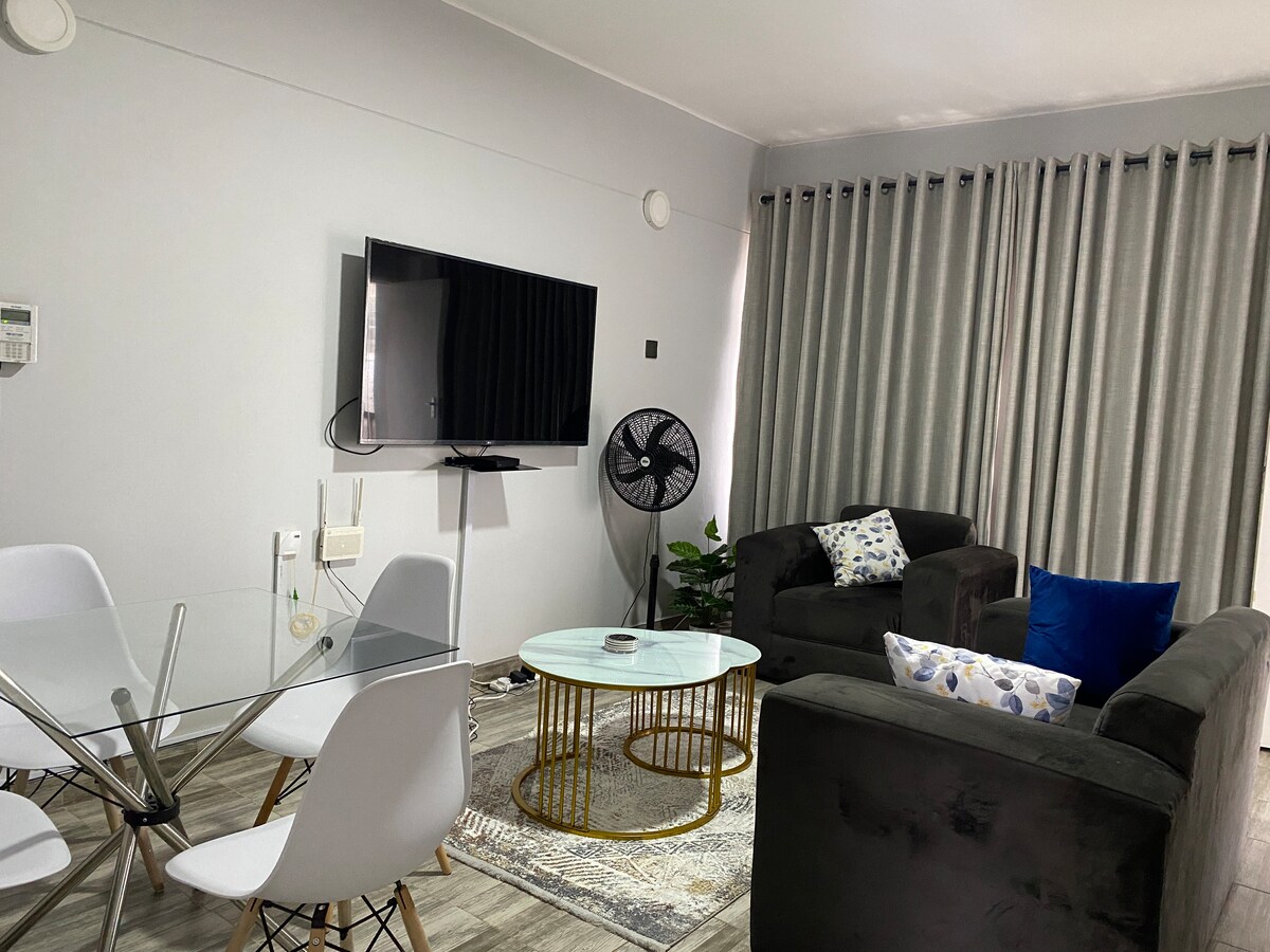 Alójate en este apartamento minimalista de 2 dormitorios recientemente renovado en el corazón de las avenidas Harare. Ubicado en el segundo piso, cuenta con amplias habitaciones, una acogedora sala de estar, una cocina totalmente equipada y un balcón privado. ¡Disfruta de una electricidad confiable! El estacionamiento seguro y la seguridad nocturna garantizan la tranquilidad. Perfectamente ubicado cerca de tiendas y restaurantes, este apartamento es ideal para estancias de negocios o de placer. ¡Reserva ahora!