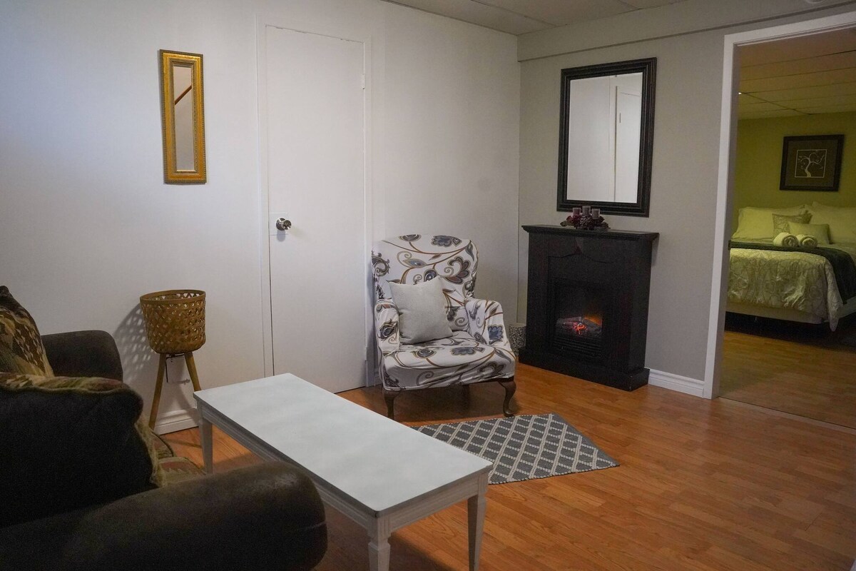 Apartamento en la planta superior con dos dormitorios queen, totalmente amueblado, ubicado en el centro de Englehart. El edificio está justo al lado de la tienda de comestibles y a poca distancia a pie de la mayoría de los lugares de la ciudad (arena, hospital, escuelas y campos de pelota). Las rutas de motos de nieve son accesibles y el pintoresco parque provincial Kap-Kig-Iwan está a poca distancia en coche. Lavadora y secadora en el baño. Cocina grande con café Keurig, sala de estar con TV inteligente de 55 pulgadas, chimenea eléctrica, sofá doble reclinable y sofá modular con capacidad para dos personas.