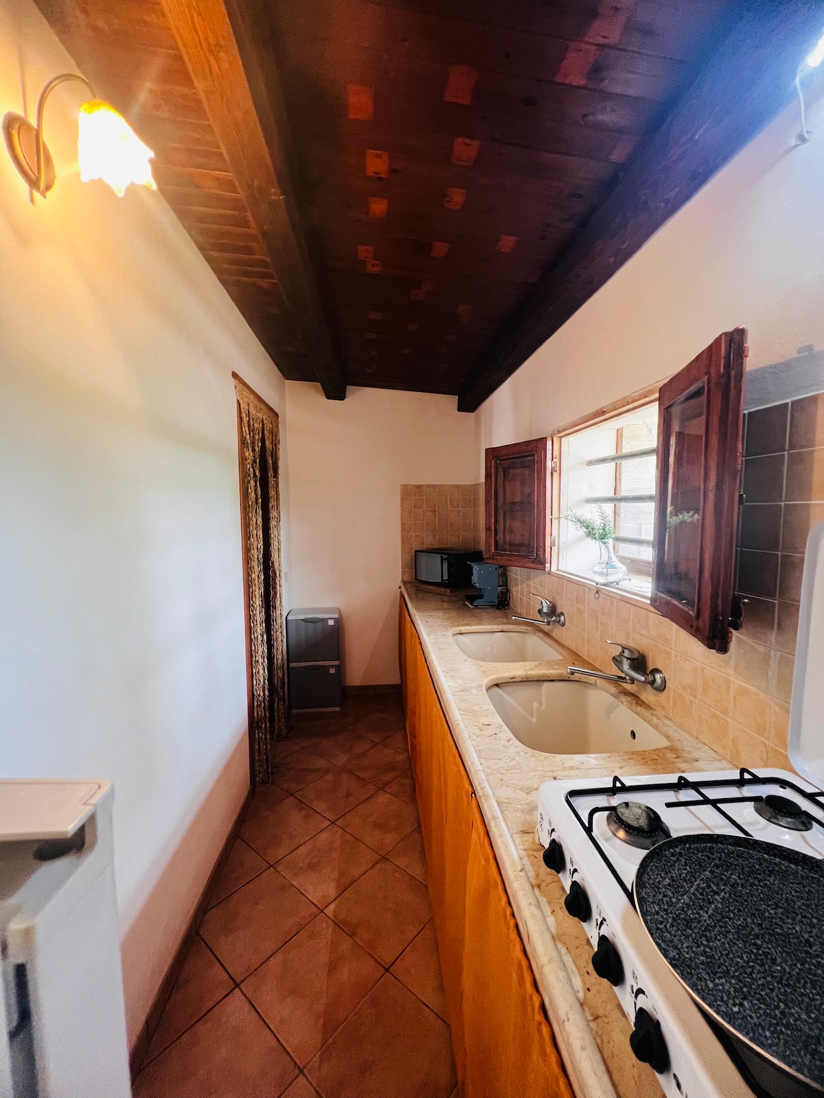 Mortillina es una casa de 40 metros cuadrados, con un dormitorio con cama tamaño king, sala de estar con cocina y baño. Está construida sobre una terraza suspendida con unas vistas impresionantes del valle, las montañas y el pueblo de Raffadali al fondo. Además, los huéspedes tienen acceso gratuito a la piscina de la casa principal a pocos metros de Mortillina. La piscina se comparte con los huéspedes de la casa principal (máximo 8 personas).