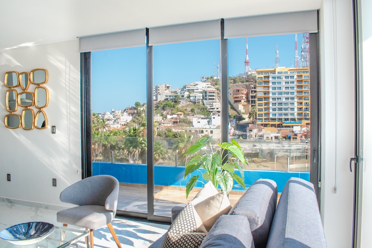 El Loft se encuentra en un edificio construido recientemente, terraza con una vista espléndida del mar, playa y la ciudad. Localizado en la Avenida del Mar donde se llevan a cabo eventos importantes: Carnaval, Maratón y Triatlón Internacional. A tan solo 15 minutos se encuentran el Centro Comercial La Gran Plaza, Cines, Zona Dorada y Centro Histórico.