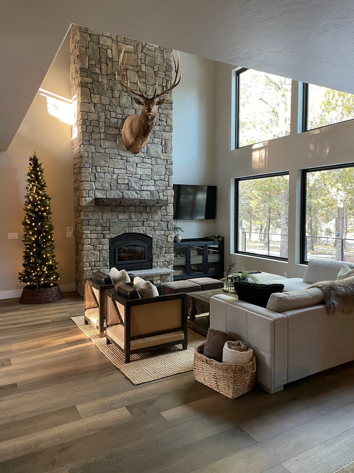 Apartamento de lujo en el lago, recién remodelado con un entorno romántico, vistas excepcionales y comodidades modernas. Televisor grande de 65 pulgadas con YouTube TV y tus cuentas. Chimenea lineal, calefacción por suelo radiante en todas partes, acogedor y cómodo. Iluminación controlada por altavoz inteligente, electrodomésticos modernos de estilo europeo, gran bañera de inmersión con agua caliente sin fin. La vista desde la terraza es increíble. La piscina junto a la playa en verano y nadar en el lago es lo mejor. Fuego y smores junto al lago... Ven y crea recuerdos. Ah, McCall
