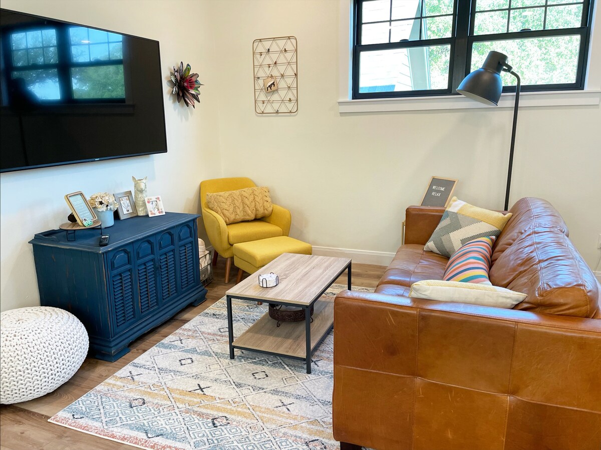 ¡Tómalo con calma en esta escapada única y tranquila, a solo 10-20 minutos de todas las cosas de Waco! ¡Este nuevo estudio privado se encuentra entre árboles con un espacio al aire libre solo para ti! La casa de invitados está diseñada para que te sientas como en casa, desde el cómodo colchón hasta el espacio de estar con la naturaleza justo fuera de tu puerta. Ya sea que solo quieras relajarte, trabajar o explorar Cameron Park/zoo, el Museo Dr. Pepper, el Mercado Magnolia, el Lago Waco, la Universidad de Baylor o leer un libro en la hamaca, ¡tu experiencia divertida te espera!
