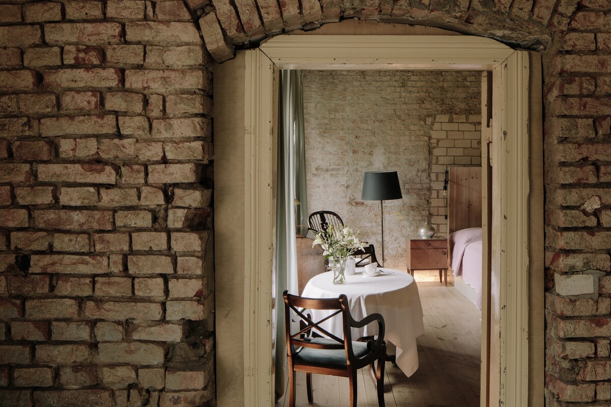El Kranich Hotel ofrece la rara experiencia de alojarse en un museo. Diseñado como un lugar de desacceleración, aquí se pueden dar largos paseos por las playas de Bodden y el mar Báltico. En casa, puedes relajarte en la espuma de las bañeras antiguas, con vistas al parque, mientras te apegas a la madera en el horno de hierro fundido. Las lámparas unidas debajo de las tablas del piso dejan que la luz se deslice sobre las paredes, destaque las texturas de las paredes de ladrillo y libere la historia contemporánea.