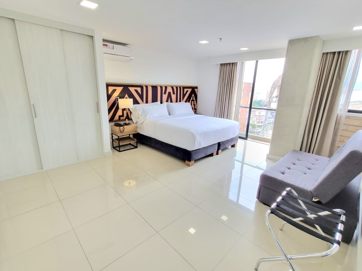 Amplio, lujoso con balcon y king bed
