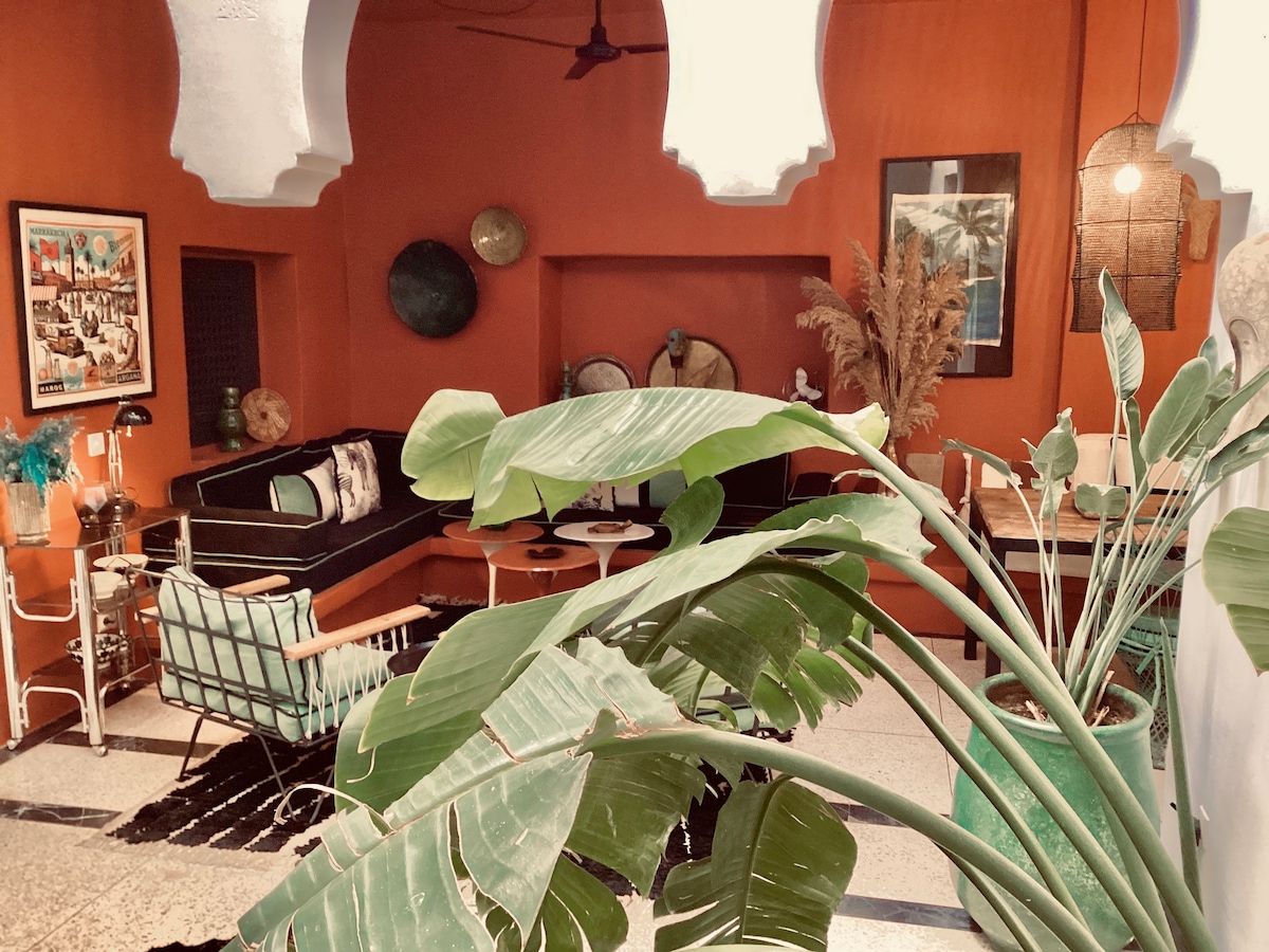 En el corazón de uno de los barrios más antiguos y auténticos de la medina de Marrakech, encontrarás un oasis verde de tranquilidad con un ambiente artístico que refleja la atmósfera de esta ciudad artística. La casa fue planificada y habitada por una pintora. Todavía encontrarás algunas de sus obras aquí. La casa es un lugar de encuentro y respira corazón y un alma pacífica.
