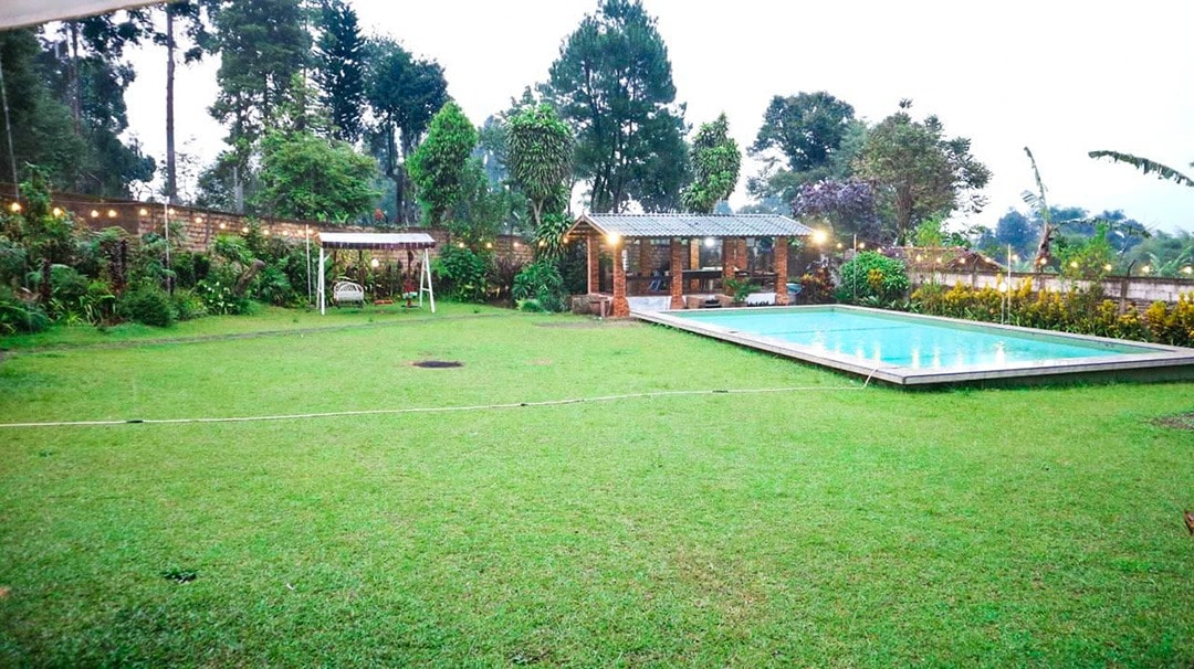 Villa Kusumo se encuentra dentro de 7 hectáreas de terreno rodeado de arrozales. La temperatura promedio por la noche es de entre 19 y 21 grados centígrados. No hay aire acondicionado. Se proporcionan refrigeradores de aire en cada habitación. Instalaciones: Piscina privada Cancha de tenis privada Chimenea en el interior. Parrilla Wi-Fi Televisión con cable Cocina totalmente equipada Calentador de agua Actividades: Cascadas (Curug Panjang y Cibulao están a 10 minutos en coche). Paseo por el arrozal. Tenis. Nada. Tostar malvaviscos. Parrilla. ‘kambing guling’ spit-roted at the garden - by request