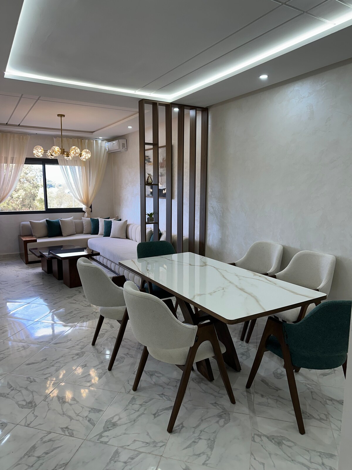 Luminoso apartamento de 120 m² con 3 fachadas y luz solar durante todo el día. A solo 5 minutos de la playa, a 10 minutos de Kenitra y a 3 minutos de Marjane. Disfruta de una acogedora sala de estar, baño privado, espacio de trabajo dedicado y wifi rápido, perfecto para familias, parejas o trabajadores remotos. Cerca de cafeterías, mercados y el centro comercial, con fácil acceso a Rabat (40 min).
