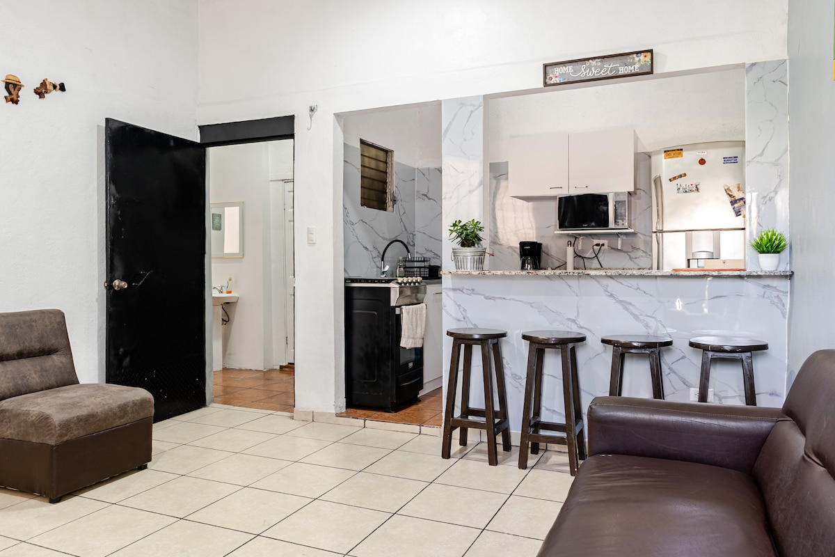 Acogedor Estudio con Cocina y Netflix Cómodo estudio para hasta 2 personas, ideal para viajes de trabajo o descanso. Cuenta con cama matrimonial + sofá cama, cocina equipada, baño privado, aire acondicionado, Wi-Fi rápido y Smart TV con Netflix y otras aplicaciones. Ubicación estratégica: • A menos de 1 km de Walmart Constitución (15 min caminando) • Cerca de transporte, supermercados y restaurantes. Check-in flexible | Ropa de cama y toallas incluidas. ¡Reserva ahora!