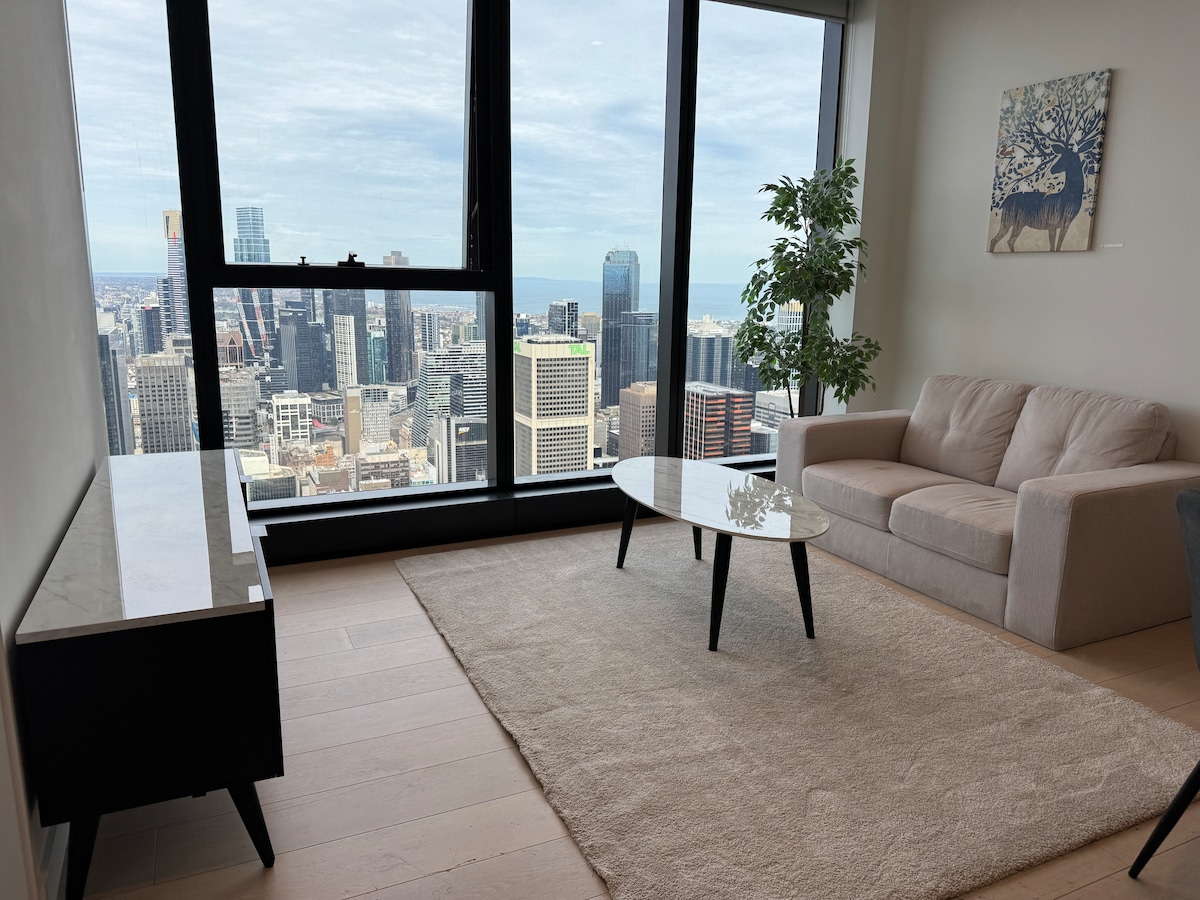 Gran apartamento 1B1B en el piso 45F ubicado en el corazón del distrito financiero, decorado con lujo con jardín de invierno, increíbles vistas al río en la ciudad, especialmente brillantes vistas nocturnas, ya que está en el piso alto. Lugar agradable y acogedor para alojarse, cerca de la estación central de Melbourne, Victoria Market, supermercados, tranvías, restaurantes, cafeterías, etc. Una amplia gama de restaurantes y hoteles de alta categoría. Se ofrecen compras, brunch y entretenimiento. Wifi de alta velocidad gratuito. TV con Netflix. Aprovecha al máximo los servicios como el gimnasio y las piscinas.