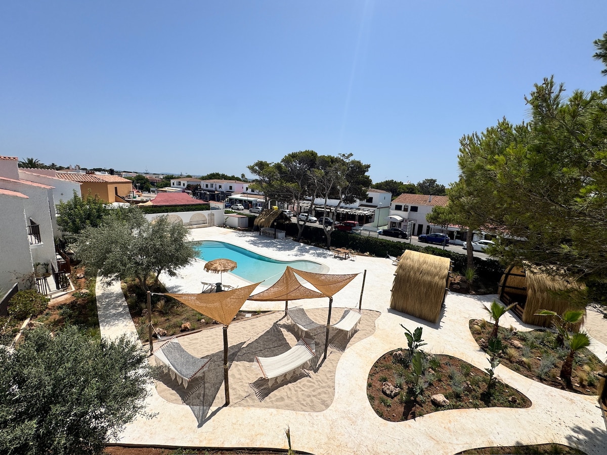 ¡DISFRUTA de tu rincón exclusivo en el paraíso! Bienvenido a nuestros Apartamentos de Lujo, renovados para brindarte descanso, estilo y confort. Ubicados en una encantadora urbanización con bares, tiendas y hasta parque acuático. Disfruta de la piscina privada solo para huéspedes. A 3 km está Ciutadella, con su historia y encanto. Explora tres calas cristalinas cercanas al complejo y más de 50 playas repartidas por la Isla. Naturaleza, lujo y ubicación… todo en un solo lugar.