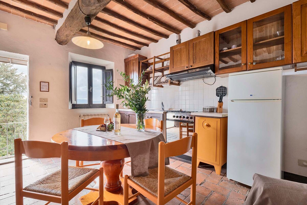 ¡STIAMO LAVORANDO PER VOI! ... ¡TRABAJAMOS PARA TI! La casa está completamente reformada y amueblada en 2018 con muebles de estilo clásico toscano. Los colores son cálidos y envolventes para descansar mejor durante tus vacaciones de paz y relajación. Además de los dos dormitorios dobles, tienes una cocina con una pequeña cocina equipada, nevera, cocina de inducción y una terraza amueblada con una hermosa vista a la campiña circundante.