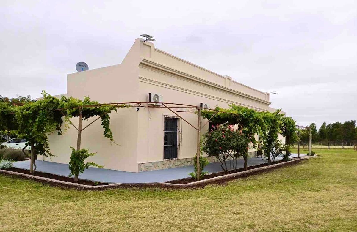 Cómoda casa de campo situada a 8 kilómetros de la ciudad de Mercedes. Equipada para 8 personas. Entorno muy tranquilo . Ideal para descanso. Espectacular barbacoa cerrada equipada y muy calida Cuenta también con galpón y garaje.