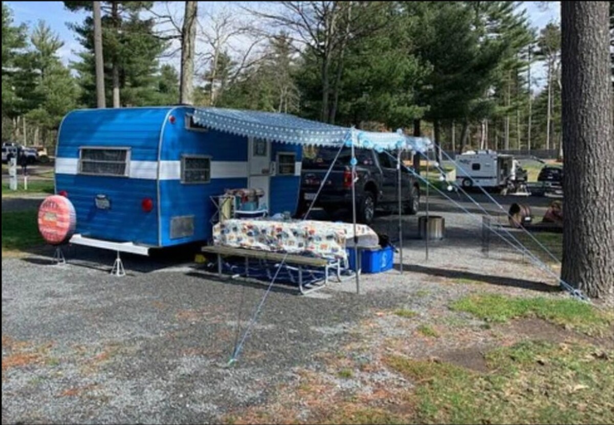 Alójate en el camping Suncook River en uno de nuestros glampers vintage. Disfruta de todos los servicios del camping como piscina enterrada, dos playas fluviales, kayaks y canoas rentables, tienda de campamentos, instalaciones de baños completos, además de todo lo que tu propia caravana privada tiene para ofrecer. Esta unidad remodelada tiene colchones nuevos y un ventilador FANtastic. Está completamente equipado con una estufa de campamento, vajilla, cafetera y sábanas limpias. ¡Estacionamos nuestras caravanas rentables justo en el río!
