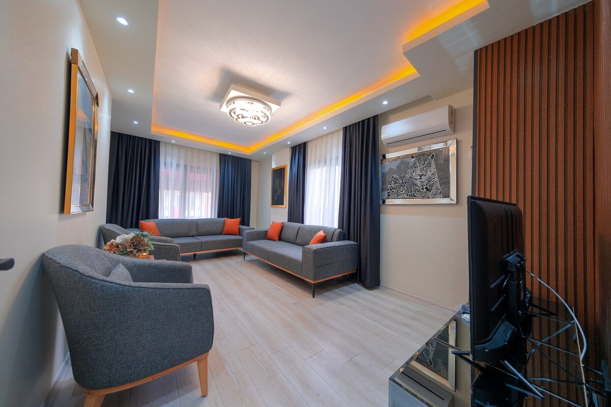 geniş şömineli balkonlu çift klimalı daire wi-fi