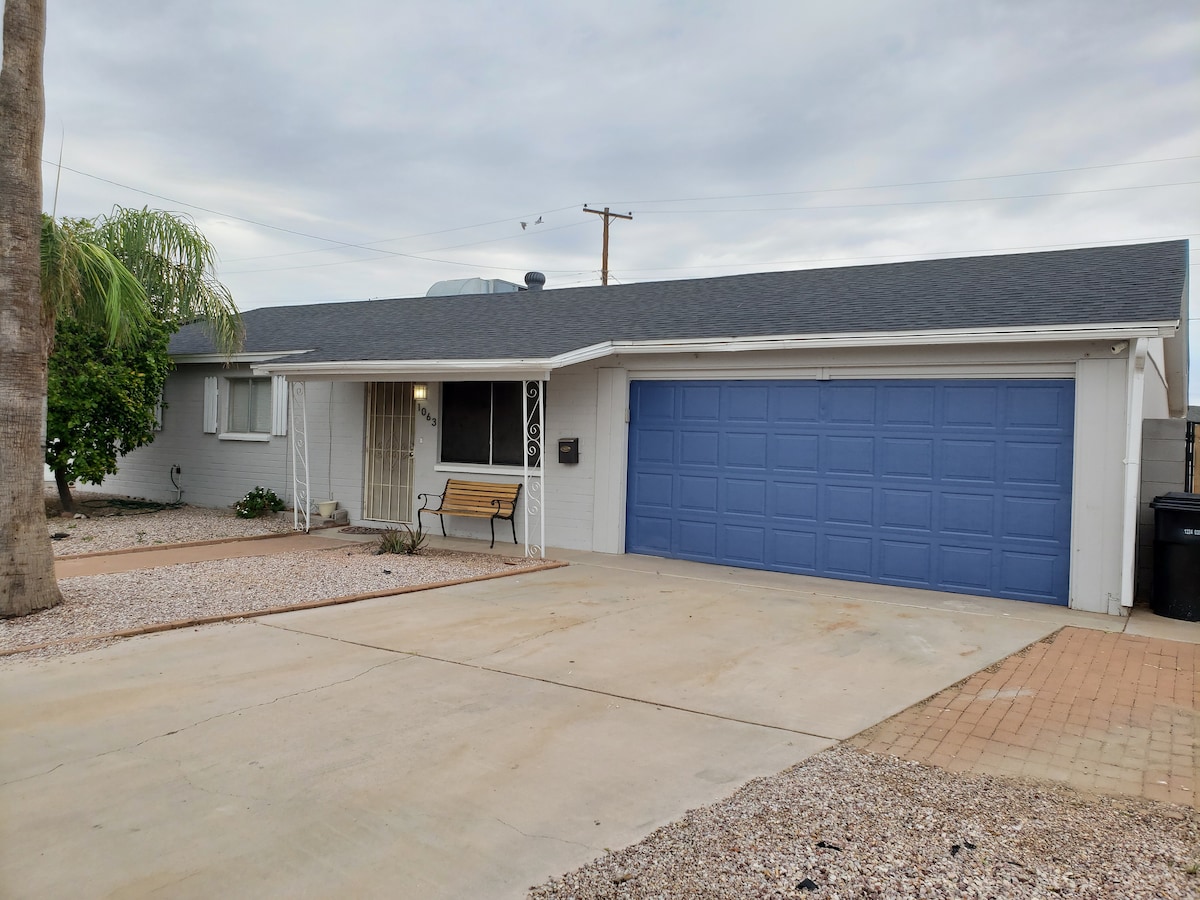 ¡Increíble remodelación recién terminada en noviembre de 2022! Si vienes a relajarte, divertirte y estar cerca de todo, ¡este es el lugar ideal para ti! Lugar perfecto para entrenar en primavera, jugar al golf, ir de compras y divertirse. A pocos minutos del aeropuerto, del centro de Scottsdale, Tempe, ASU, Cubs y los estadios de los A's. Grandes tiendas, restaurantes y teatros justo enfrente. La casa es acogedora y tiene 4 dormitorios, 2 de ellos principales. No es grande, pero es suficiente para tus necesidades básicas. Garaje para 2 coches disponible si lo necesitas. Mascotas 👍